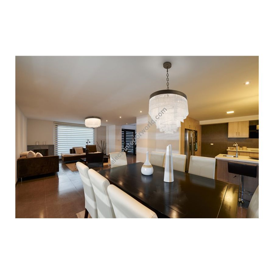 | Diameter available | h 55 - 120, Ø 60 cm - 10 x G9 LED max 12W h 65 - 130, Ø 80 cm - 16 x G9 LED max 12W h 70 - 134, Ø 100 cm - 28 x G9 LED max 12W h 172,5 - 214, Ø 110 cm - 40 x G9 LED max 12W h 75 - 139, Ø 120 cm - 28 x G9 LED max 12W h 85 - 149, Ø 150 cm - 30 x G9 LED max 12W |