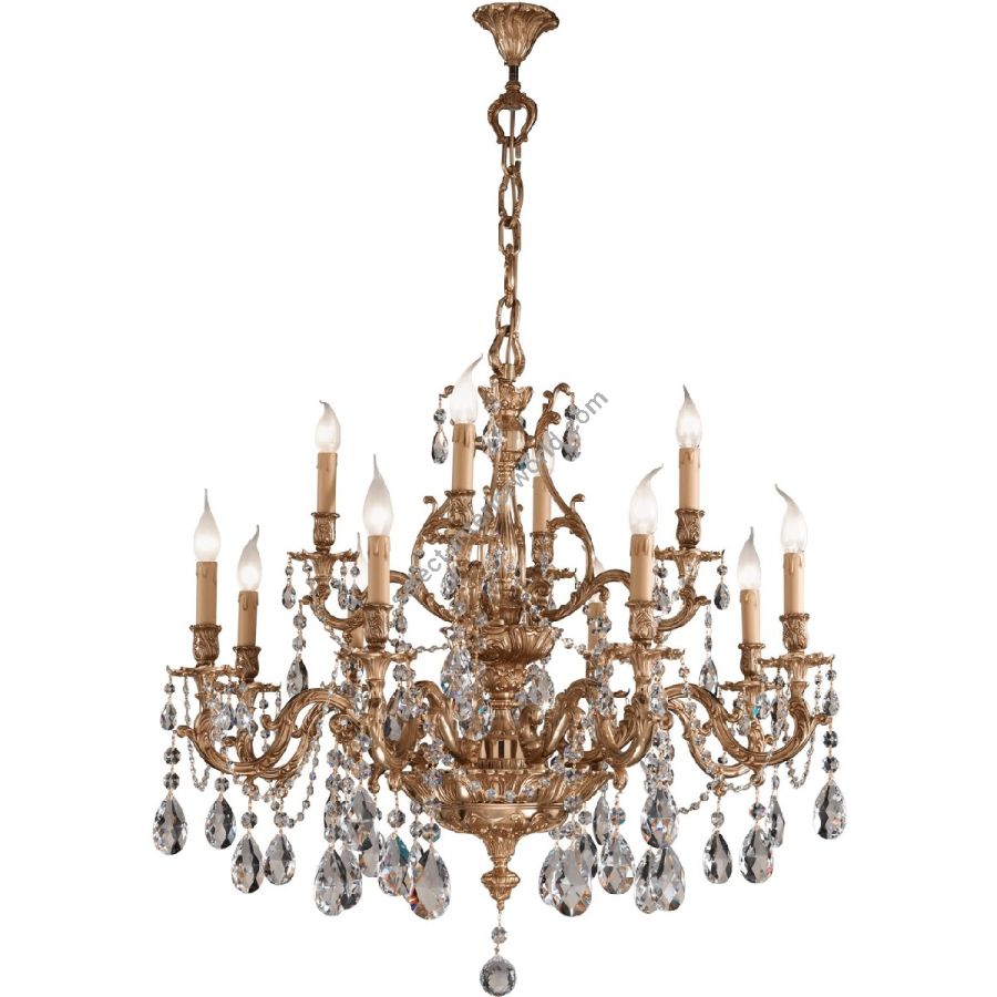 Important brass collection in Louis XV style, which covers all classic lighting needs, offering small to large size chandeliers, wall lamps, table and floor lamps. Made in different finishes and embellished with Schoeler crystals, it can be customized in sizes and dimensions