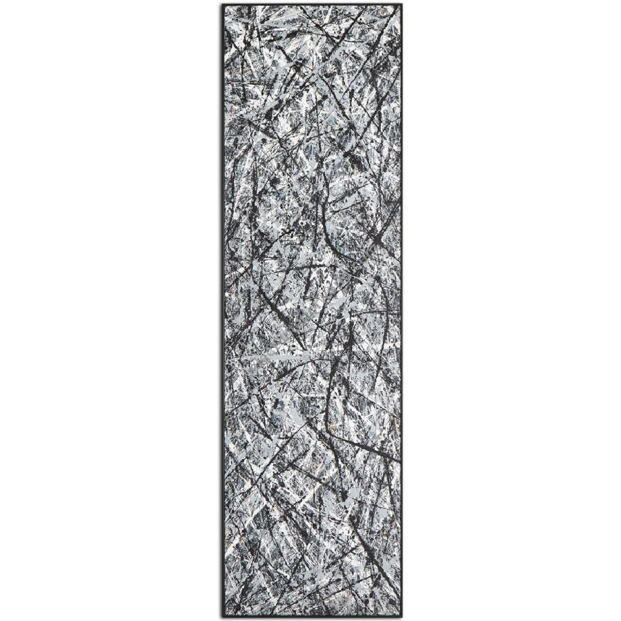 Hand-painted in the style of abstract expressionist Jackson Pollock, this dramatic artwork stands over 2 meters tall within a wooden frame and makes for a spectacular statement piece that will be the center of attention in any home.