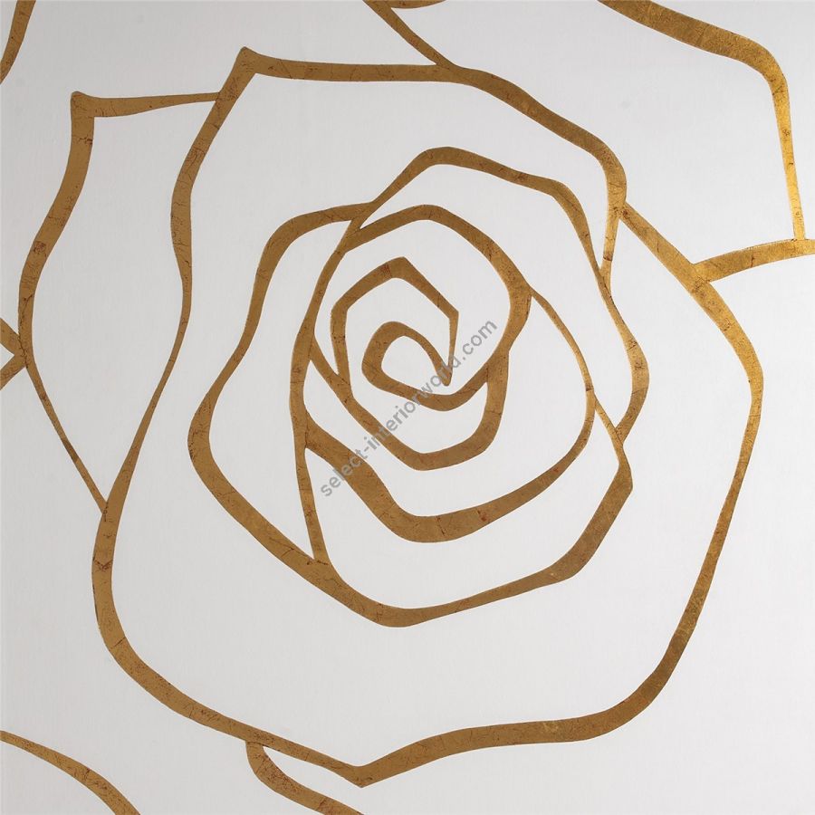 Stunning in its simplicity, and a beautiful addition to any interior, this stylized rose wall art piece is created with gold intarsia expertly handcarved into wood with a french white finish.