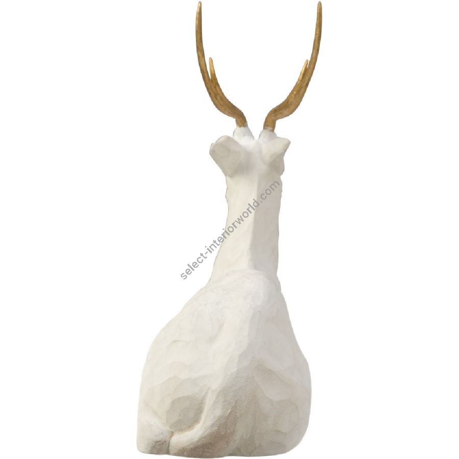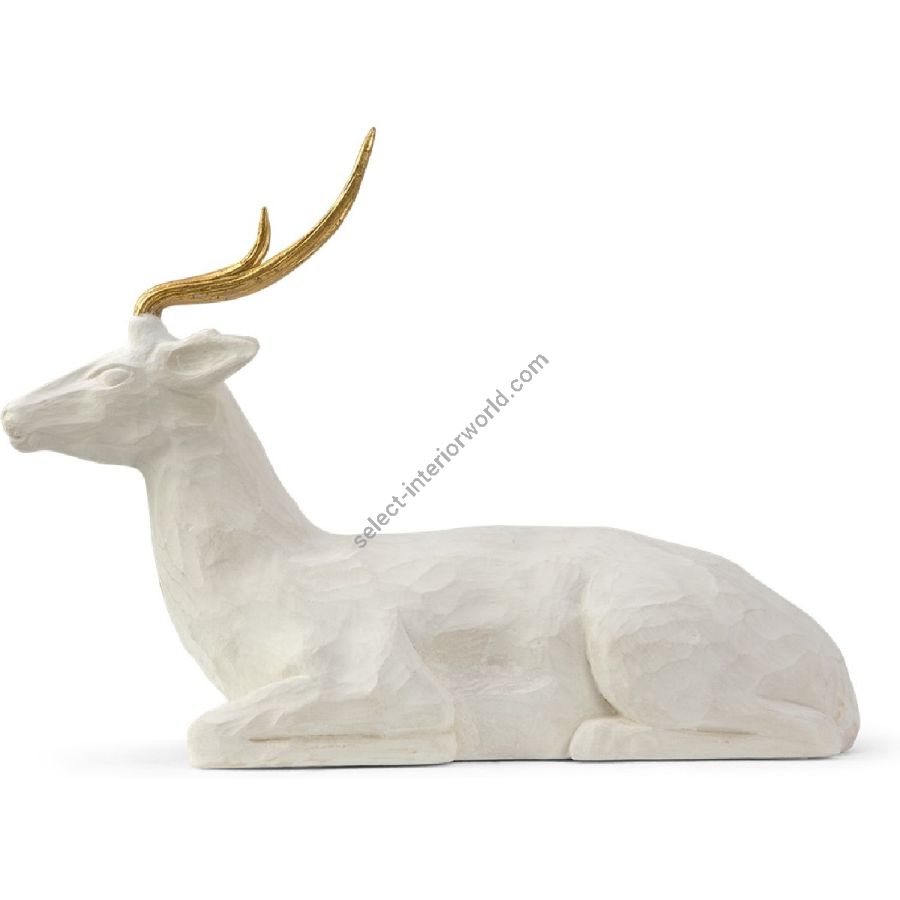 The mere image of this Deer exemplifies a peaceful image... resting and poised. The essence of this beautiful carving is gracefully understated. Carved of stone and adorned with gold leafed antlers to exhibit a true artisans attention to detail. BELLE!