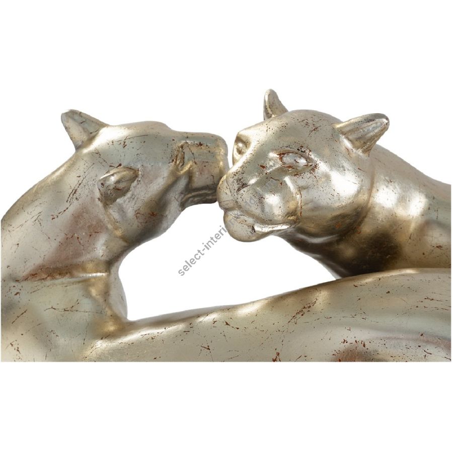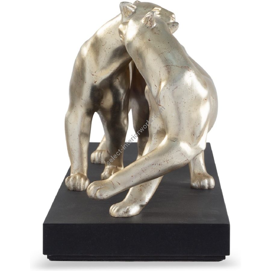 Two cast leopards playfully tease each other with grace and tenderness, lovingly displayed on a Nero plinth.