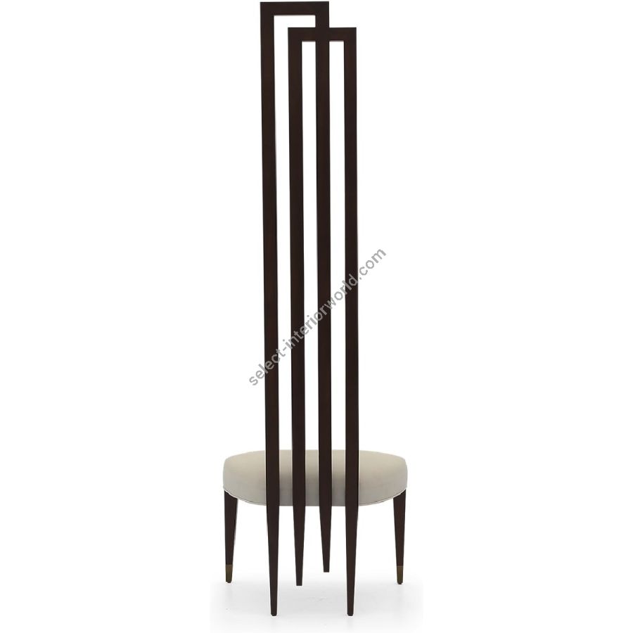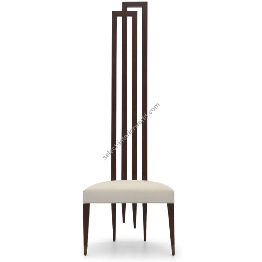 The statuesque stance with metal finish tipped legs and timeless interlocked forms of this palatial chair were designed by Christopher to be aligned against a wall, ideally as a pair, either side of a console table or grand mirror...