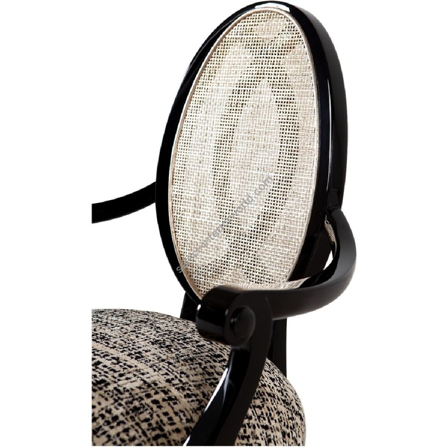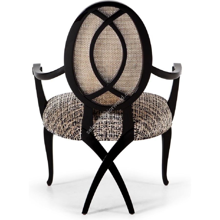 The beauty and complexity of its sunken rattan backrest is further detailed by the flowing lines of the rear facing 'Chris-Cross' legs on this magnificent dining armchair.