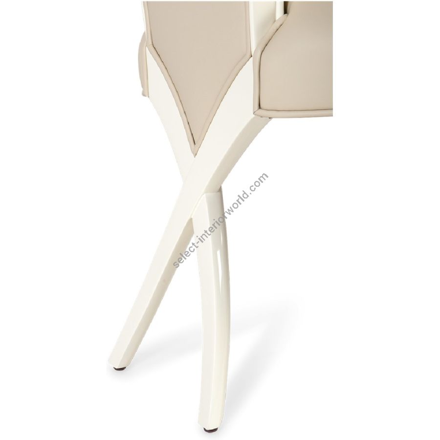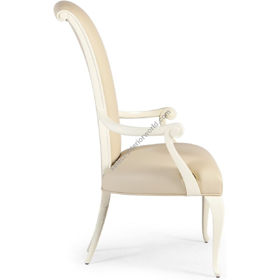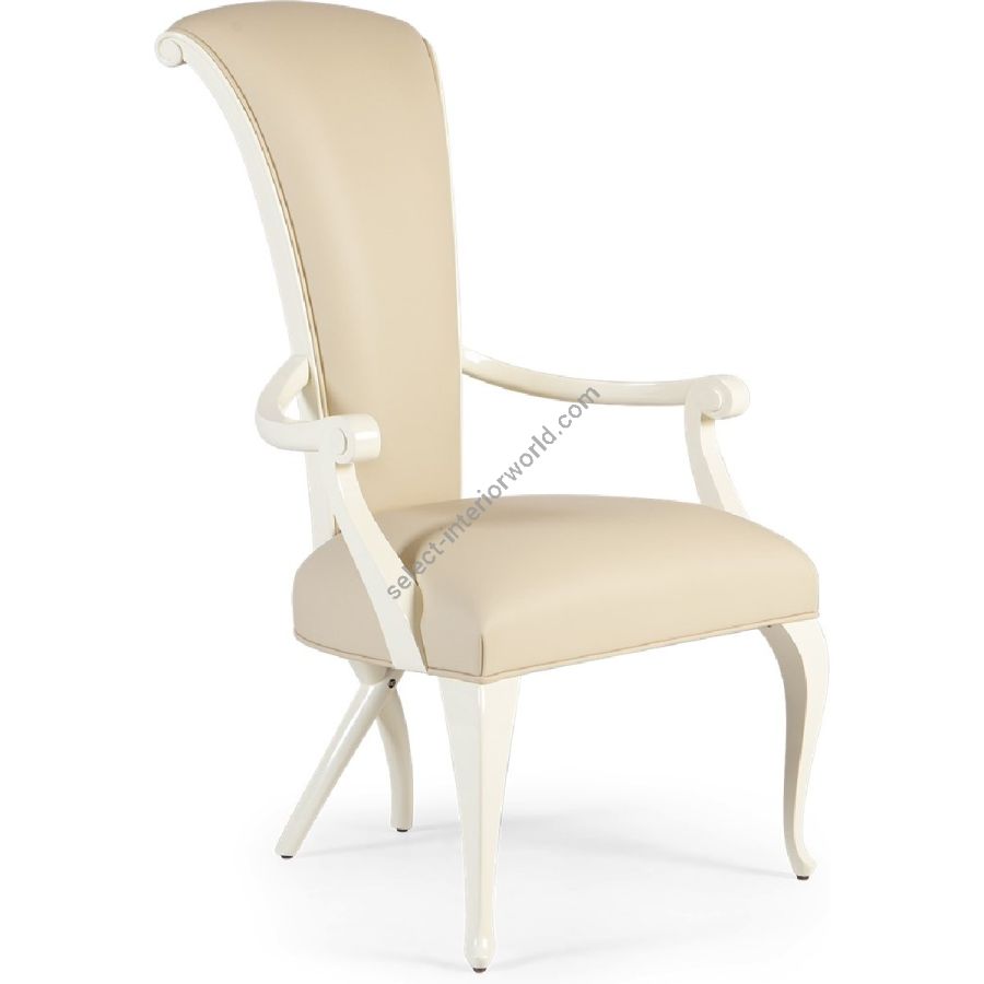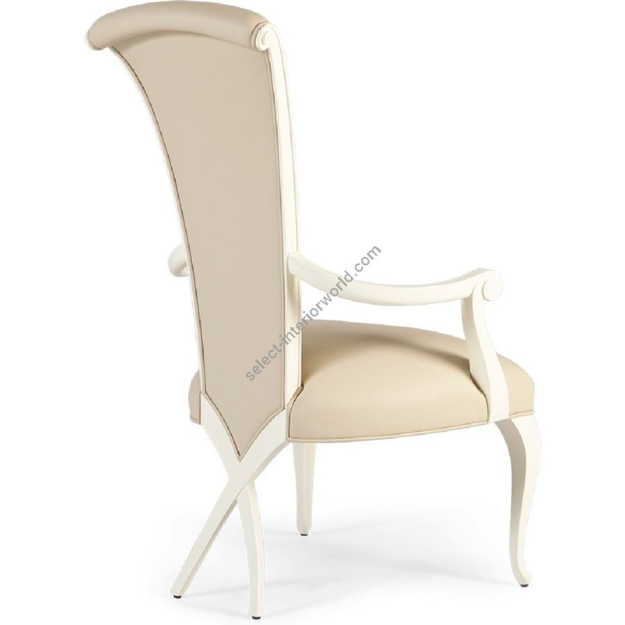 A tall, slim, tapered back dining chair with hand-carved scroll, enhanced further by flowing cabriole legs and the signature 'Chris-Cross' rear facing legs. Also available without arms (30-0008).