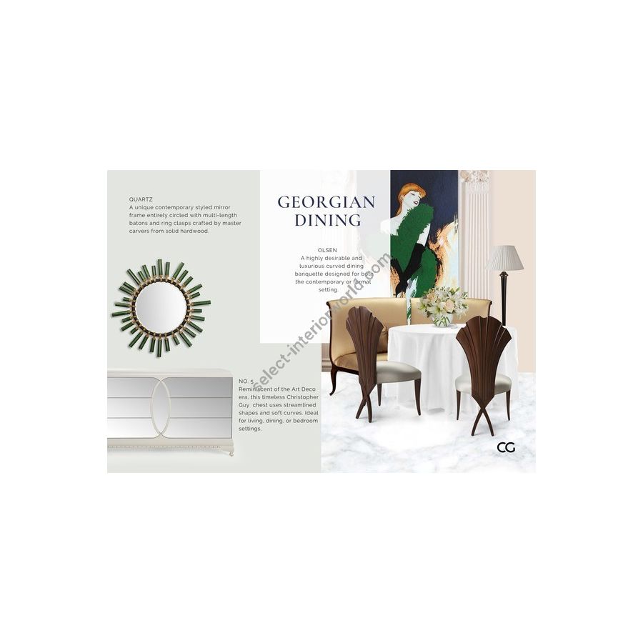 An irresistible combination of Riviera glamor and Christopher’s signature 'Chris-Cross' legs, which sweep into a sensuously scalloped mahogany back-rest.