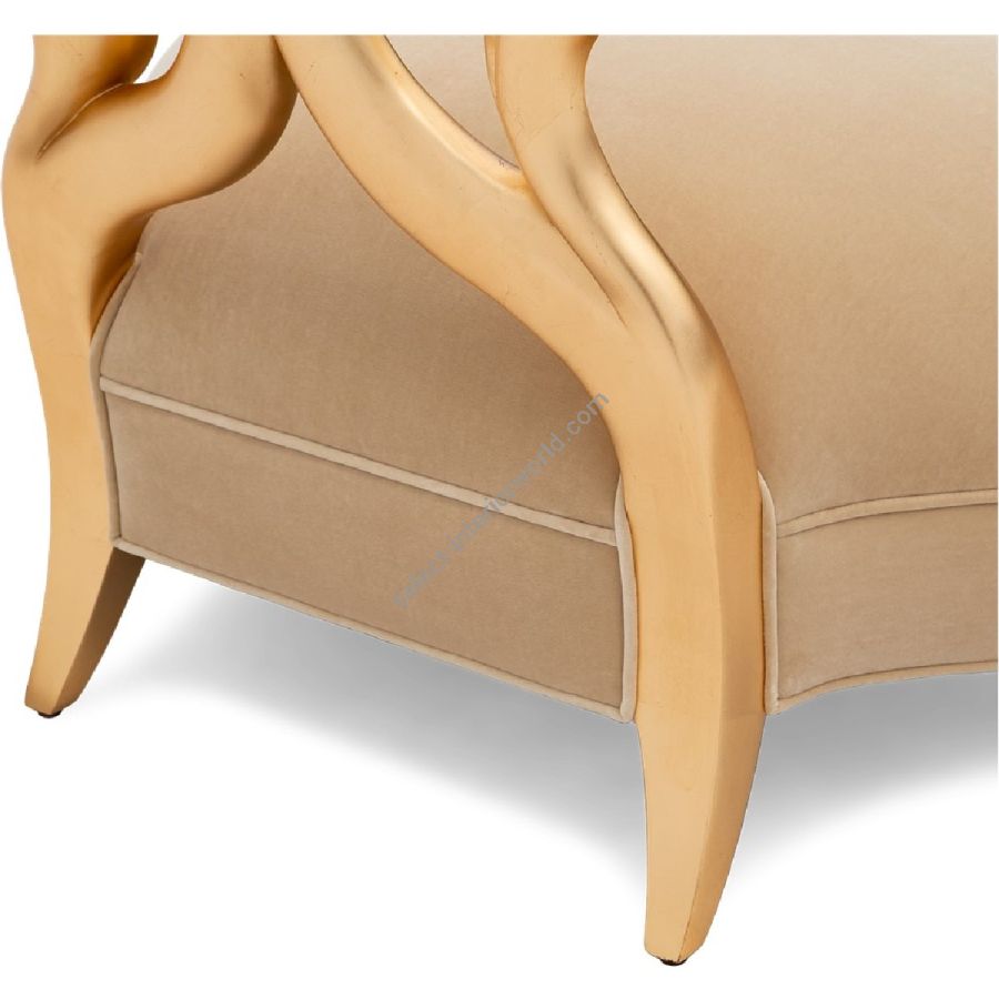 Doweled mortise and tenon frame in solid Mahogany from certified source. Hand-Carved details. Saber legs. Tight seat undersupport with high-density upholstery fill. Available in a selection of finishes. For residential use only. Commercial use is classified as Special Order Design (SOD), and alternative materials may be required. Contact us for details.