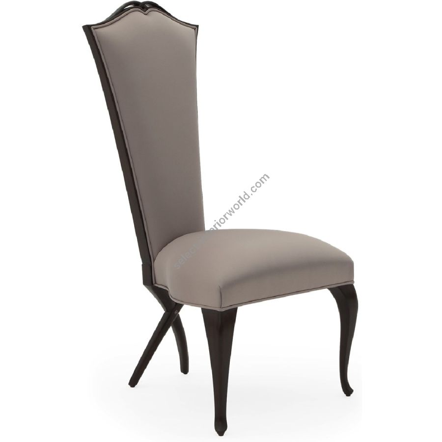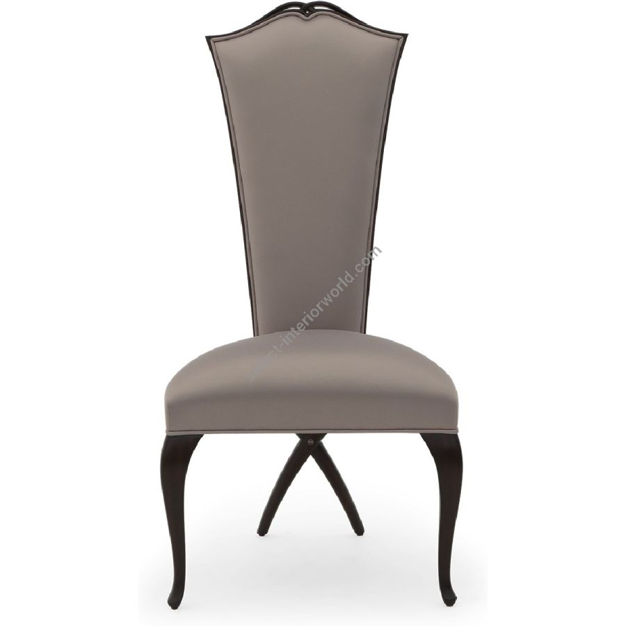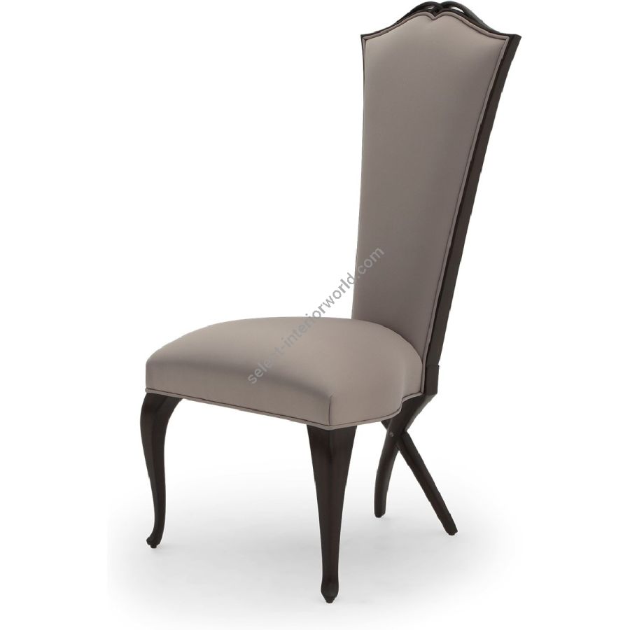 Tapered back, crowned with a hand-carved keyhole detail, and cabriole legs with the signature 'Chris-Cross' rear facing legs. Also available with arms (30-0040).