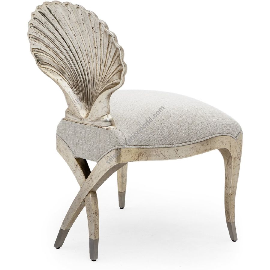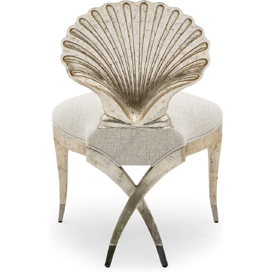 With a beauty worth of Venus herself, this metal finish tipped legs and shell-backed Chris-Cross boudoir chair is the ultimate accent piece for a classic interior.
