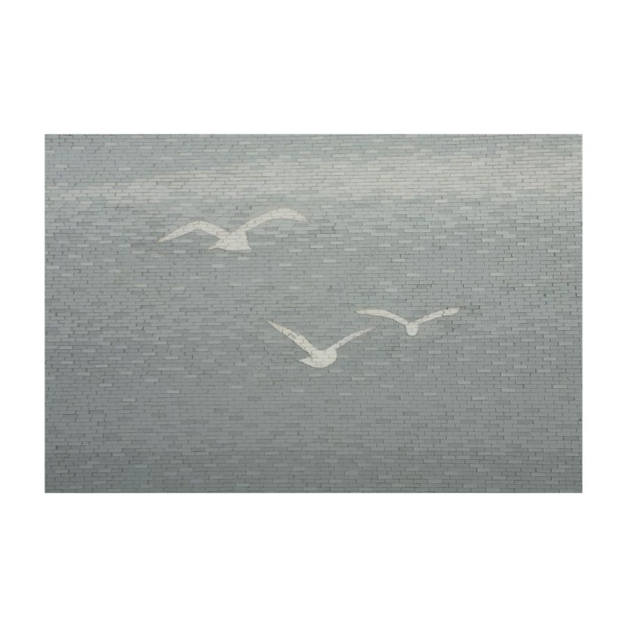 An exquisitely detailed mosaic, featuring twenty-seven thousand stained monochrome glass pieces, evoking pleasure and freedom with a romantic twist. It casts a subtle spell, inviting dreams of enjoying long hot summers of sumptuous indulgence.