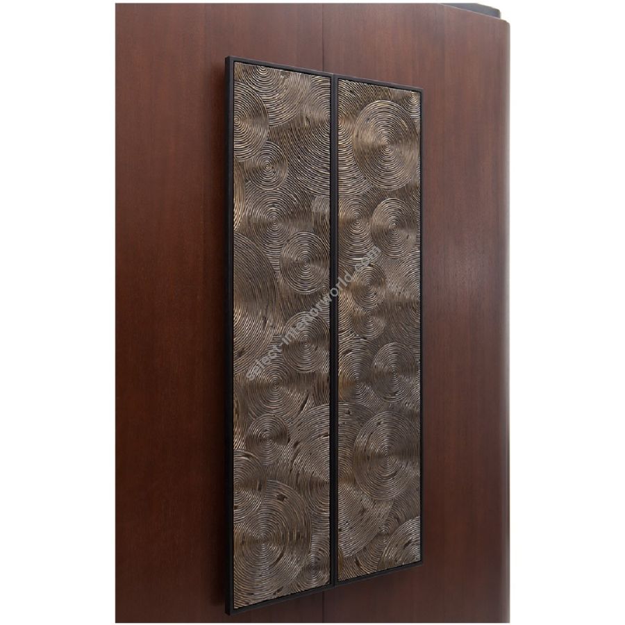 A breathtaking piece of master craftsmanship, Raffles is the ultimate bar cabinet. Beautifully hand crafted in a four-door design, the front is adorned with oversized handles, exquisitely hand crafted with circular designs. Inside, the cabinet is clad in mirror at the back and furnished with metal hanging racks on the door inners, glass shelving, wooden compartments and spotlights. Display bottles, glasses and barware with panache in the sparkling luxury of this stand-out CG piece.
