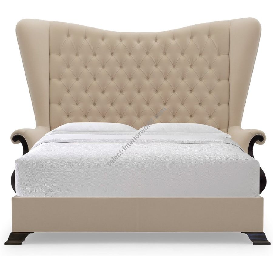 A statement of tufted luxury, contained within curvaceous cabriole winglets and 2 frontal metal feet. The bed is fully upholstered on all sides, adding a unique freestanding walkaround ability.