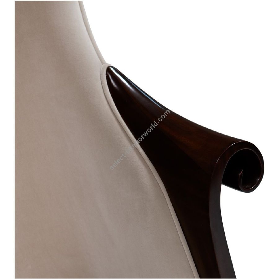 A unique and luxurious canopy bed with signature Christopher Guy scroll arms carved from solid mahogany. The piece is fully upholstered on all sides, adding a unique freestanding walkaround ability.