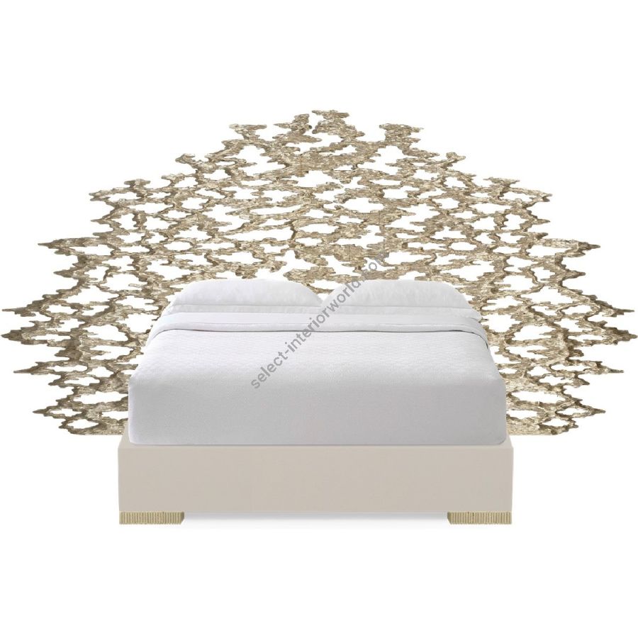 Spectacular hand-carved headboard, with upholstered base, a stunning centerpiece for any bedroom.