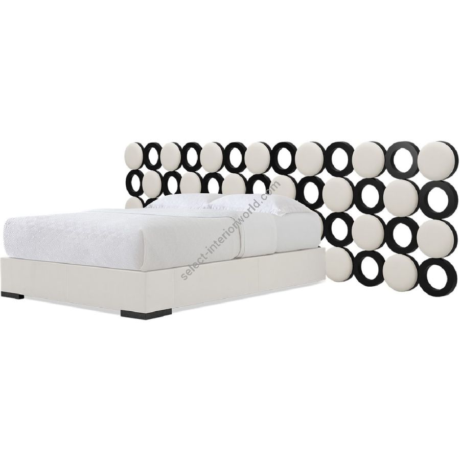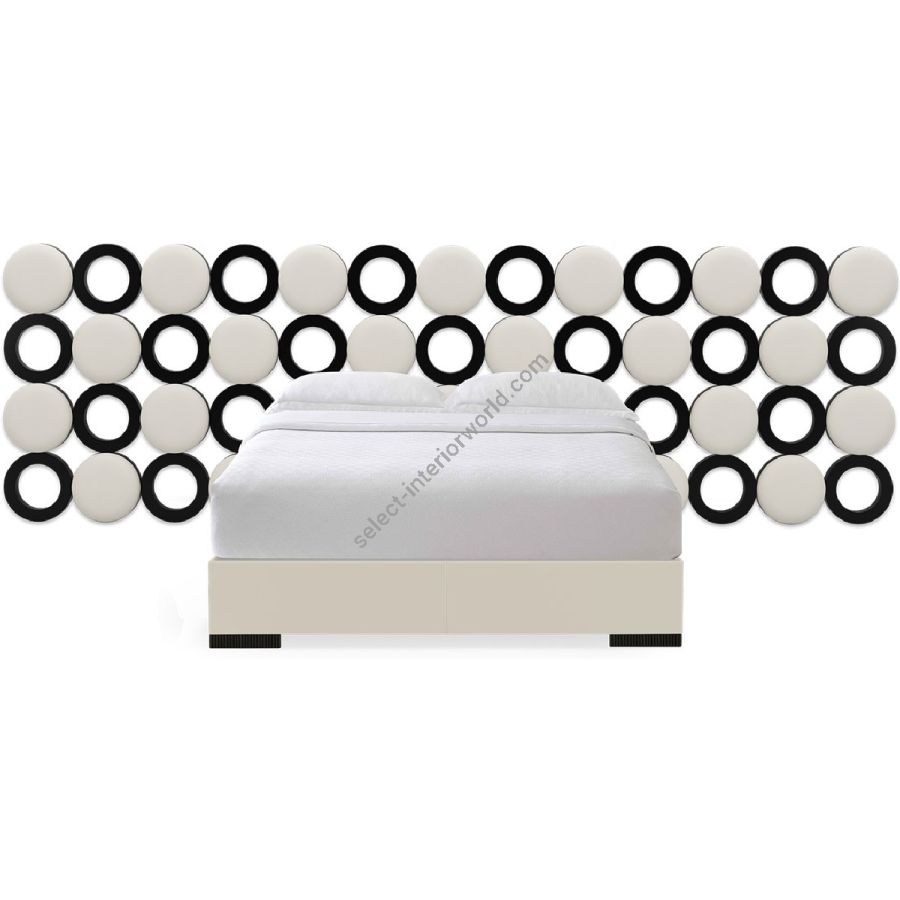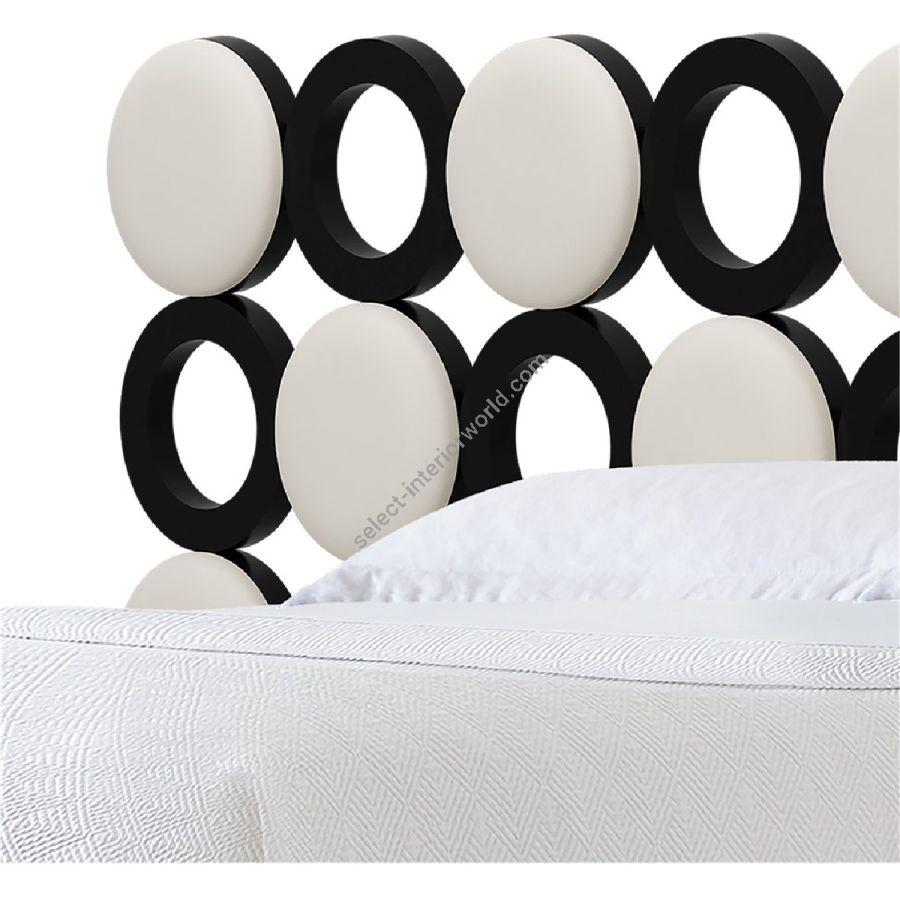 Inspiriert von den Kettenhemd-Minikleidern der Swinging Sixties besticht dieses moderne Bettset durch ein Kopfteil mit gepolsterten Scheiben und Ringen, die abwechselnd in einem atemberaubenden geometrischen Muster angeordnet sind. Auch als Einzelkopfteil erhältlich (20-0711).