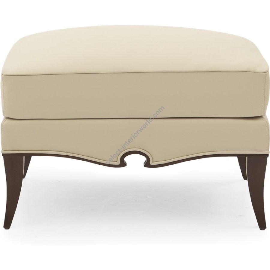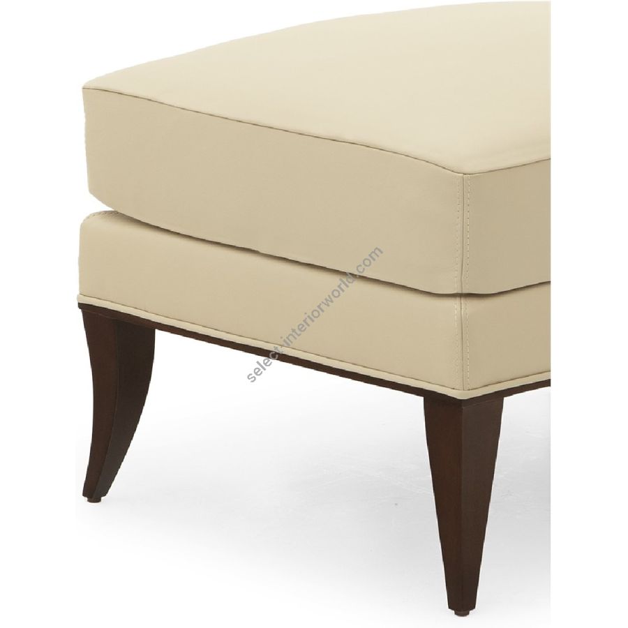 Refined rectangular ottoman, with plump cushion, carved mahogany bow detailing and saber legs.