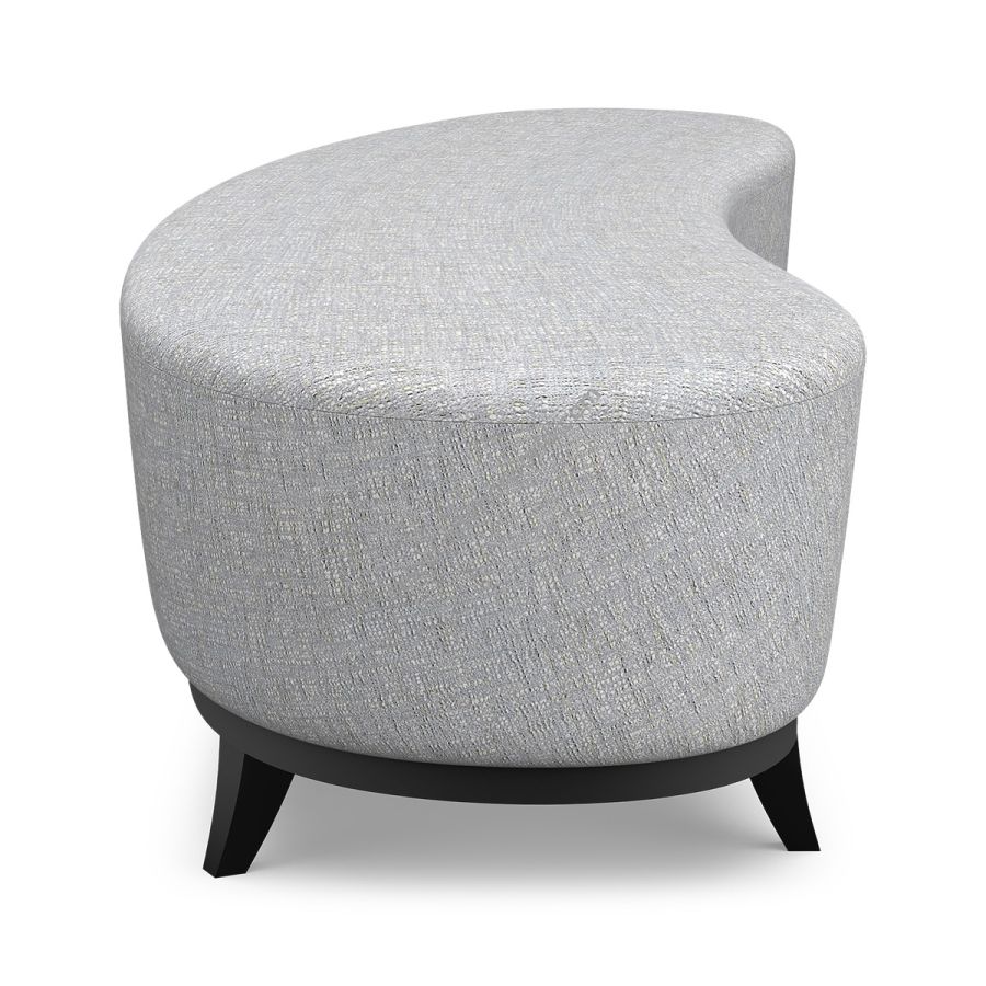 Simplicity and class are exemplified in this pod-shaped asymmetric bench, expertly crafted with an upholstered wooden frame seat and saber feet. The perfect piece to bring understated charm to a hallway, bedroom or dressing rooms.