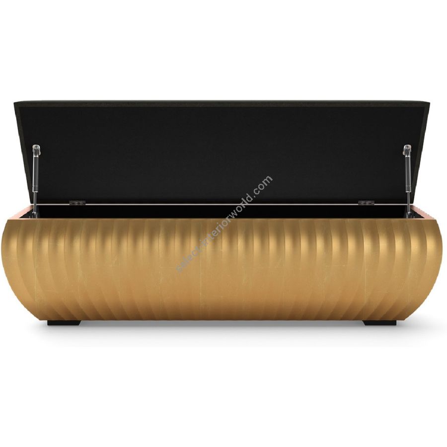 Crafted with beautiful hand carved ridged convex sides, this simply stunning bench is like a treasure chest with a hidden secret – the upholstered lid lifts to reveal a useful space for storing soft furnishings, books, magazines and other gems and delights.