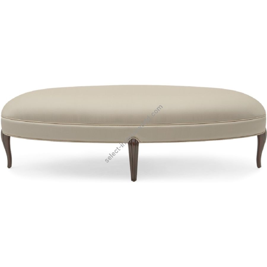 A beautiful oval ottoman with scalloped legs that works perfectly placed against a wall, or alongside a sofa.