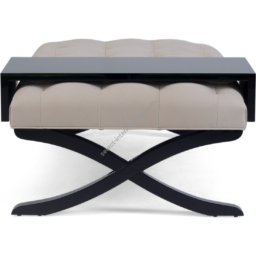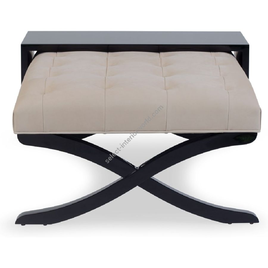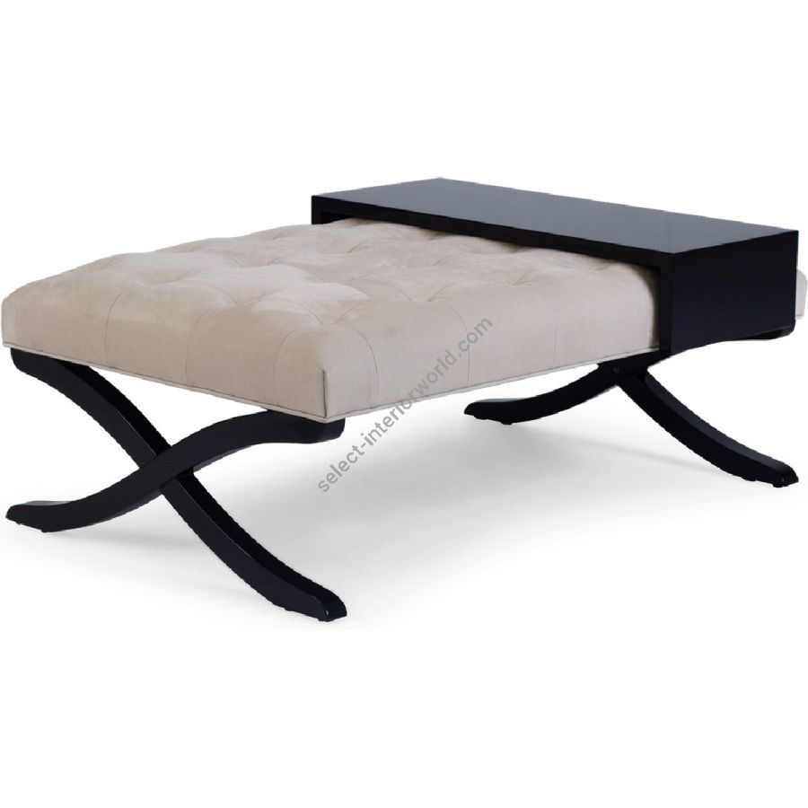 Sheer elegance, this ottoman/coffee table combination is embellished with the signature Chris-cross legs and a removable mahogany veneer tray.