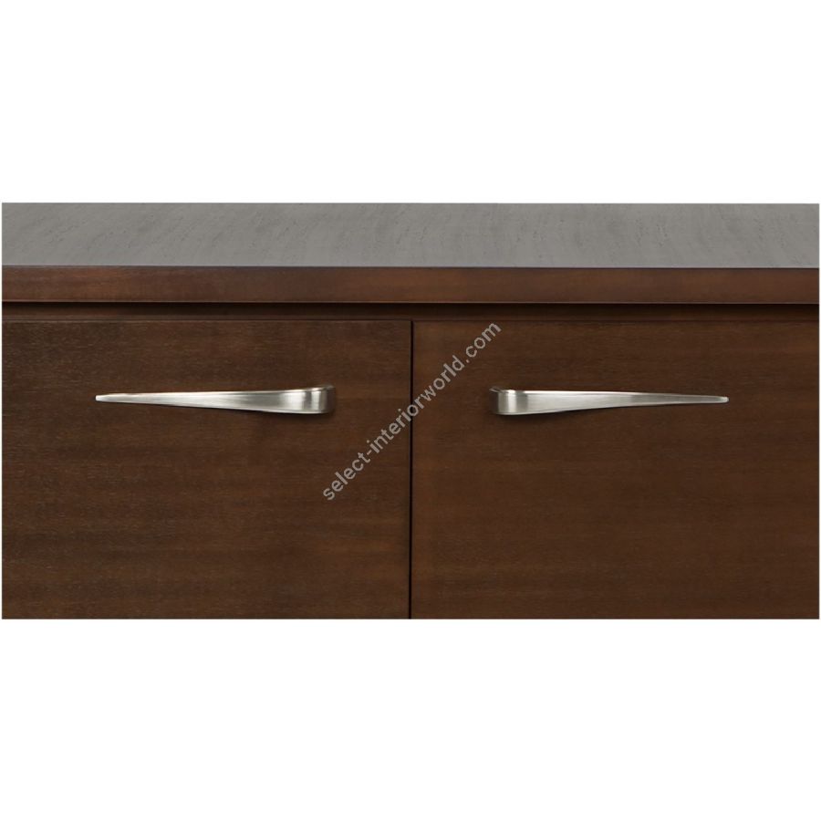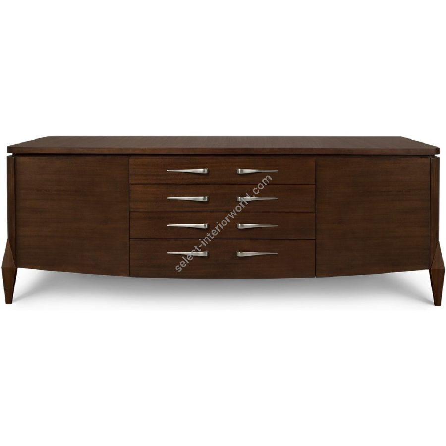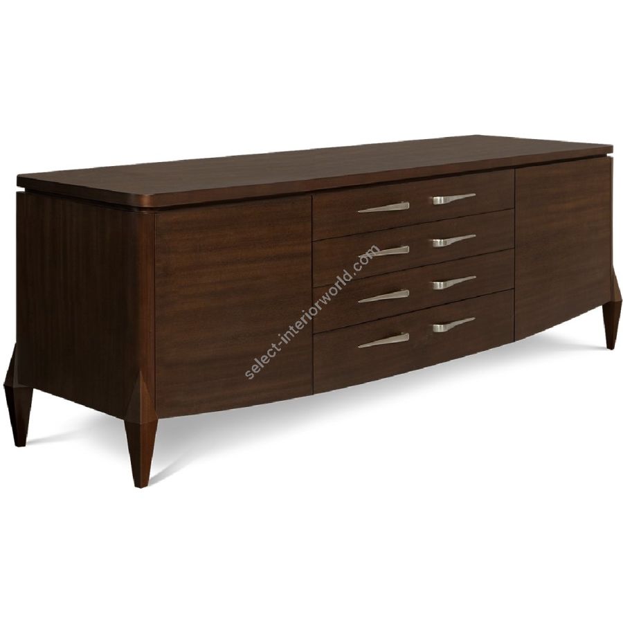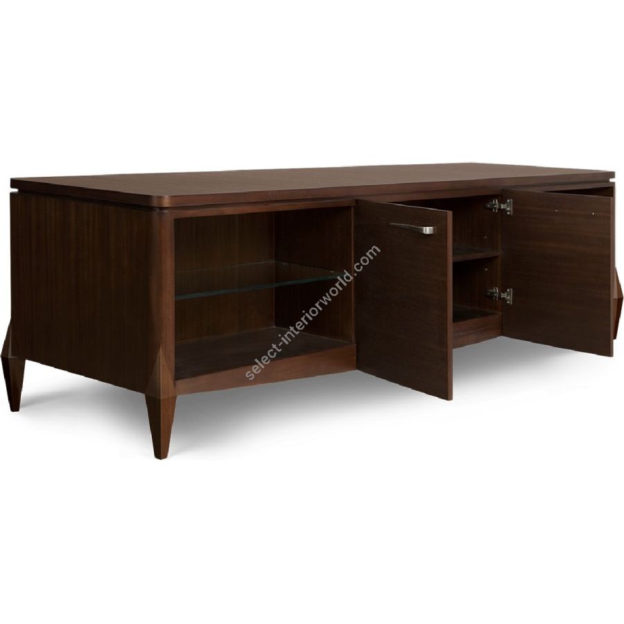Magnificent double-sided cabinet, with handles derived from a rare 1950s Bentley seen by Christopher on the streets of London's Mayfair. Features 4-drawers and two wing doors with removable shelving. The opposite side features central doors with removable glass display shelving. Ideal for dividing a dining and living space. Available in two sizes.