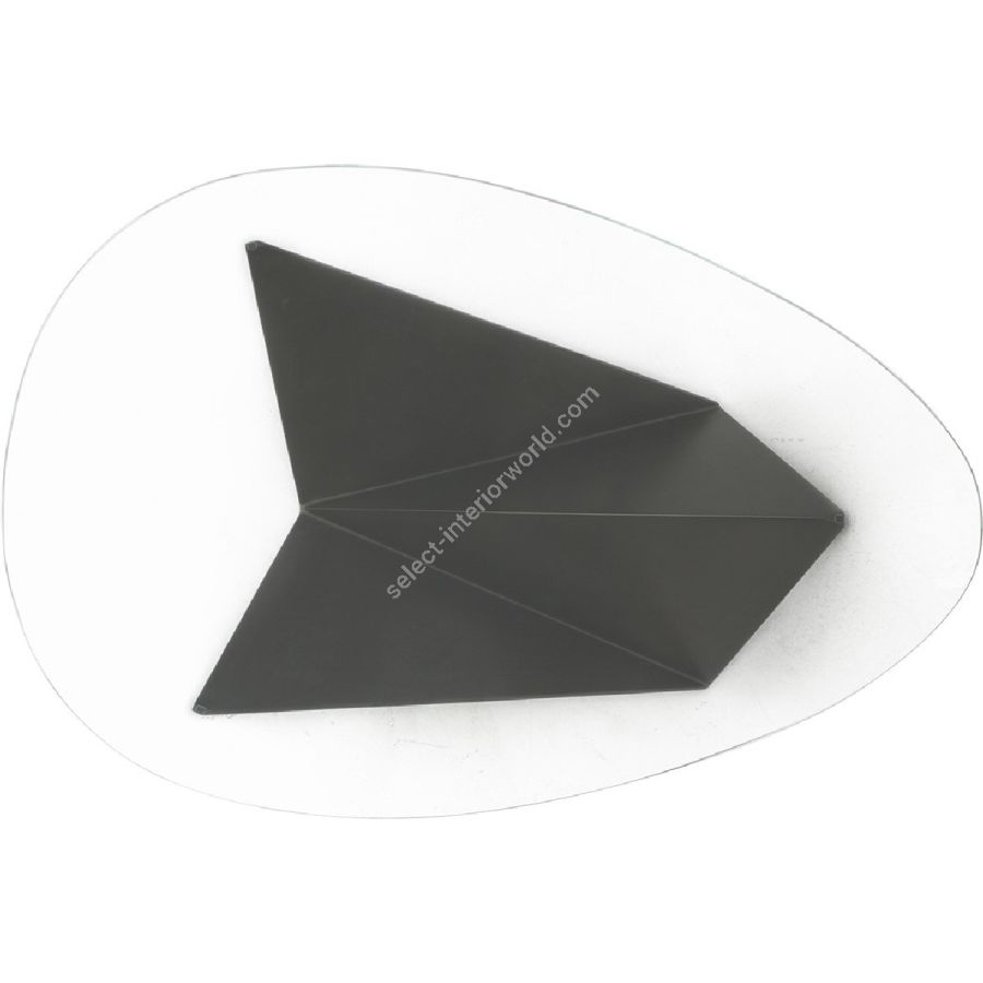 Fabulously styled with a folded origami inspired metal base and a tempered glass top, and named after the famous origami artist, this unusual coffee table is a tour de force of contemporary design. Seen from above, the base resembles an arrow, while the side-on view shows the clever folds supporting the ovoid top.