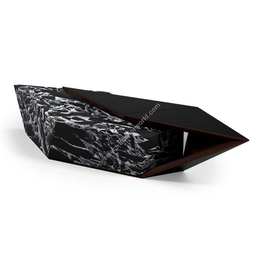 A bold expression of modern design, the Linea coffee table redefines the harmony of geometry, texture, and form. Its sculptural silhouette, inspired by sharp architectural lines, transforms into the focal point of any living space. Available in a selection of exquisite marble options, with the choice of a leather-lined exterior or a fully wood-finished version.