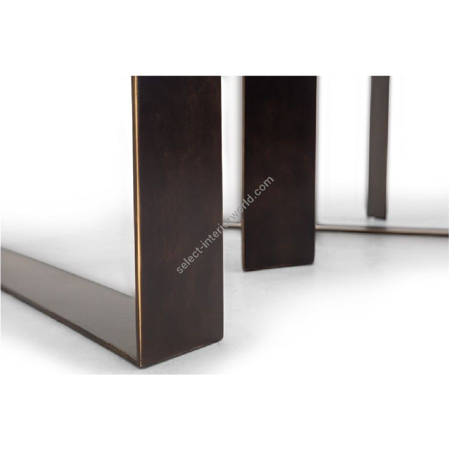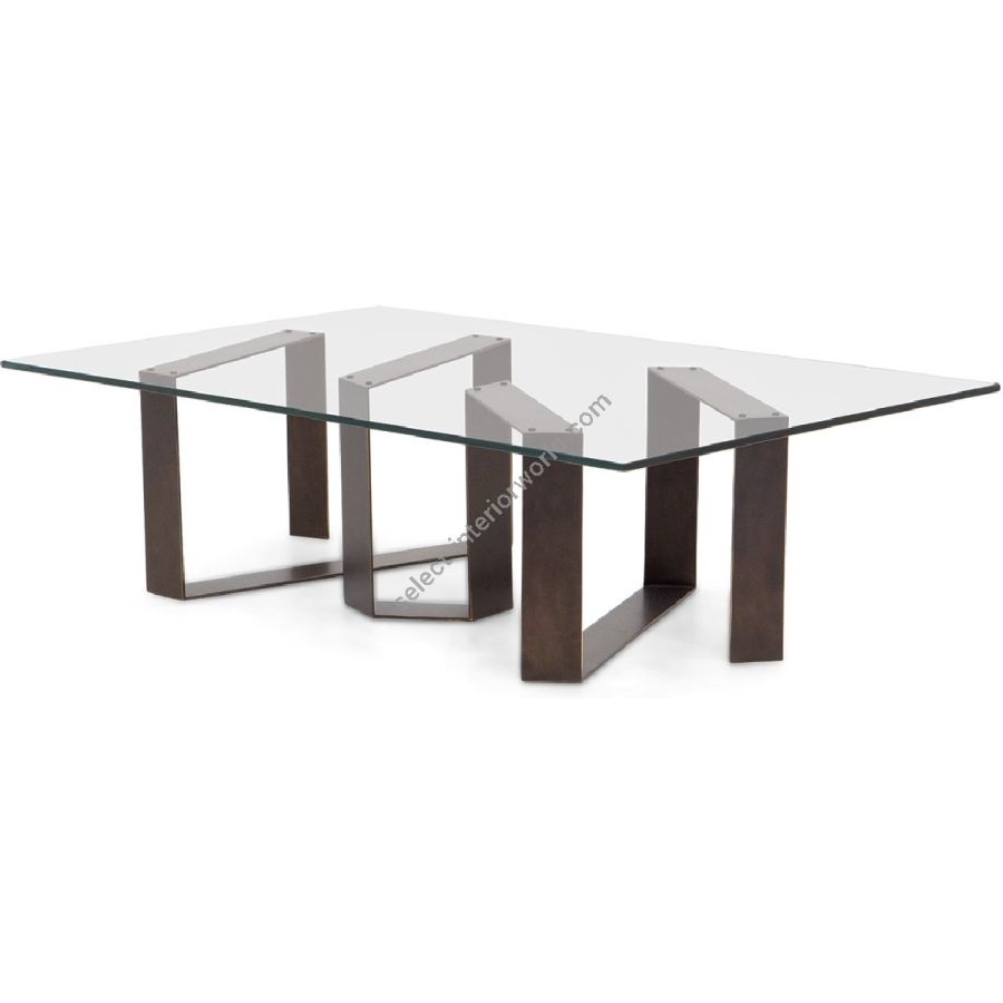 Forged Iron base. Toughened tempered clear glass top. Multiple Finishing Options. For residential use only. Commercial use is classified as Special Order Design (SOD), and alternative materials may be required. Contact us for details.