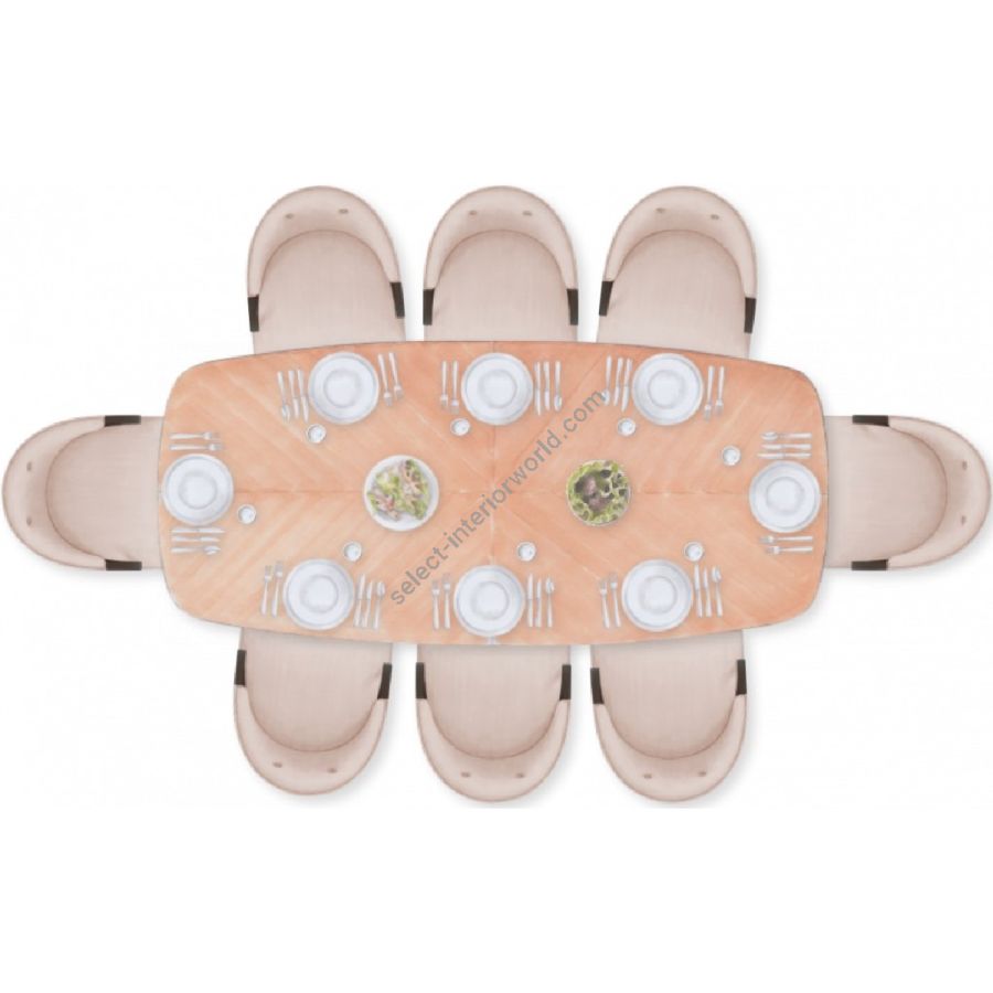 Certified Mahogany hardwood. Veneered Mahogany top. 6-8 Seater Table. Obtainable in an array of outstanding finishes. For residential use only. Commercial use is classified as Special Order Design (SOD), and alternative materials may be required. Contact us for details.
