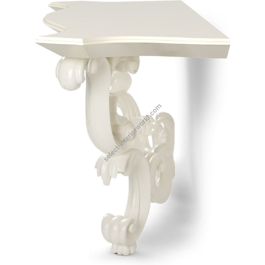 Certified Mahogany hardwood. Hand crafted by Master carvers. Veneered Mahogany top. Available in a selection of exceptional Standard and Premium finishes. Wall mounted console table (Professional installation required). For residential use only. Commercial use is classified as Special Order Design (SOD), and alternative materials may be required. Contact us for details.