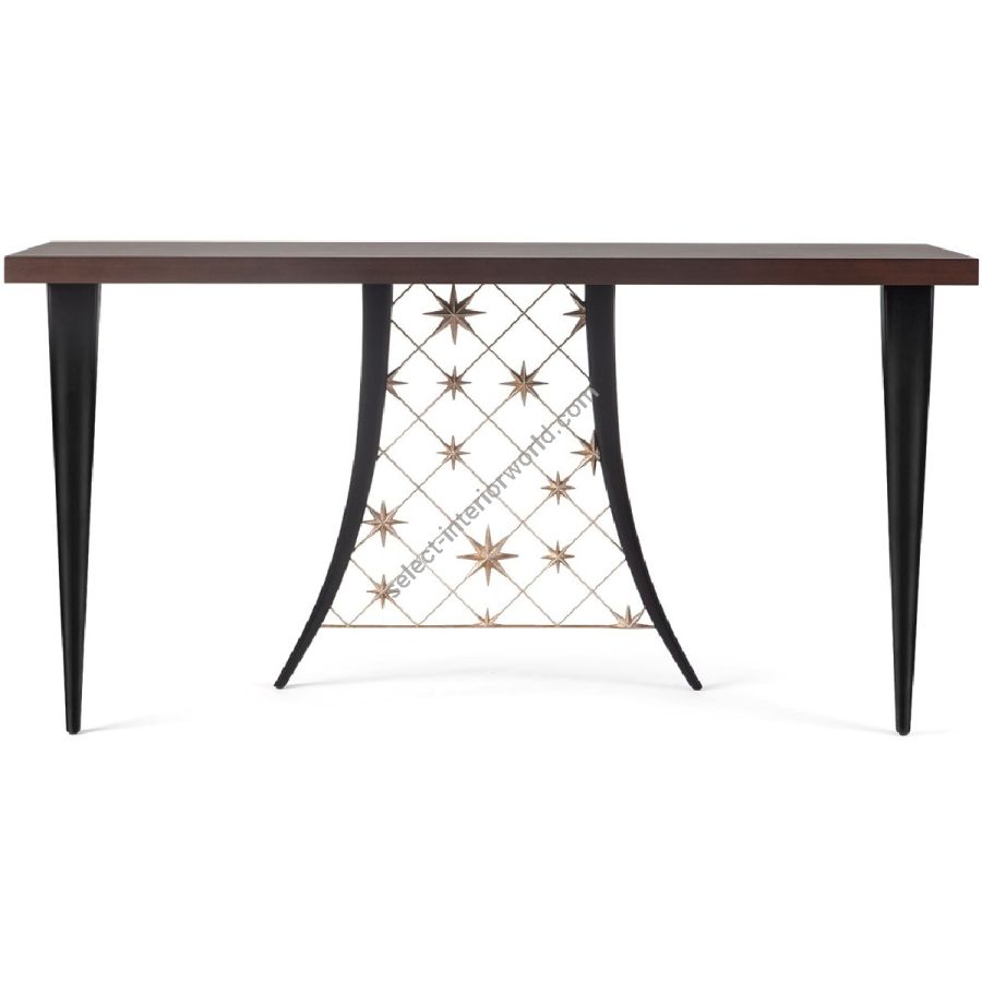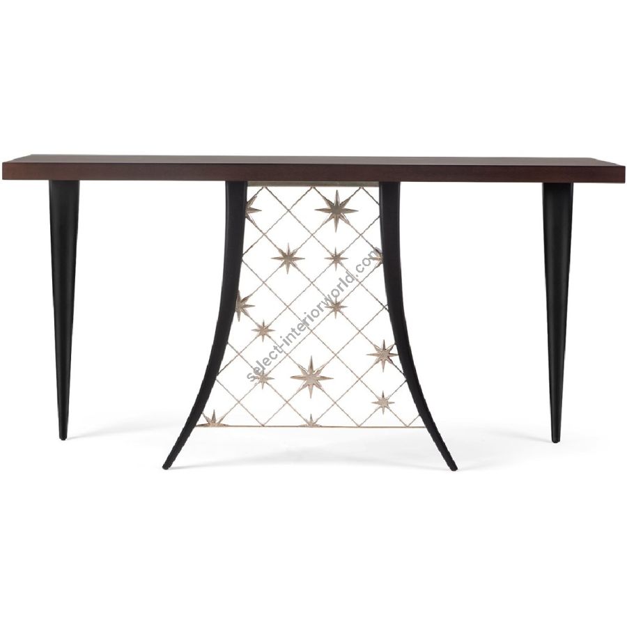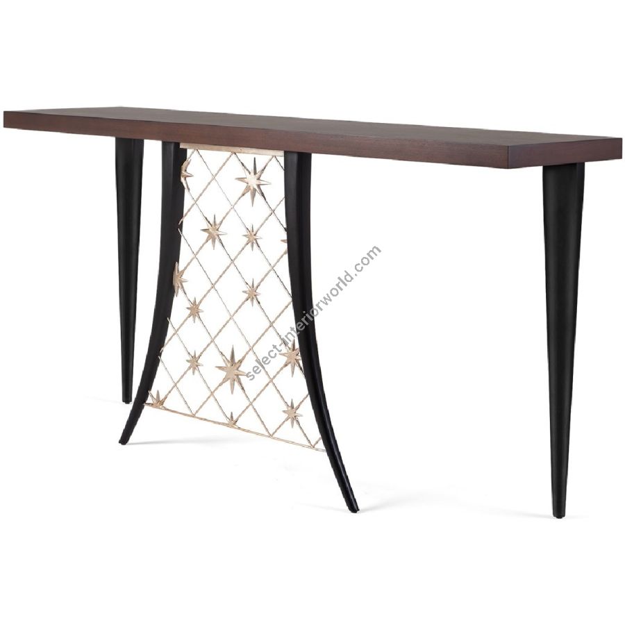 This console table, from the Constellation collection, features hand carved stars on the back gilded diamond metal mesh panel, and elegant straight front supports. A sparkling delight!
