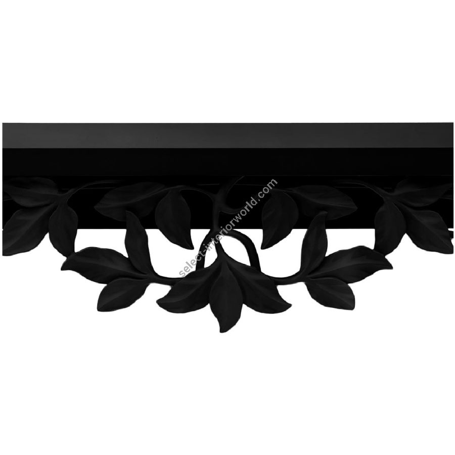 An elegant console table with exquisitely detailed tapering legs, metal cap and a hand-carved mahogany frame richly decorated in a vine leaf motif. A simple mahogany top completes the piece.