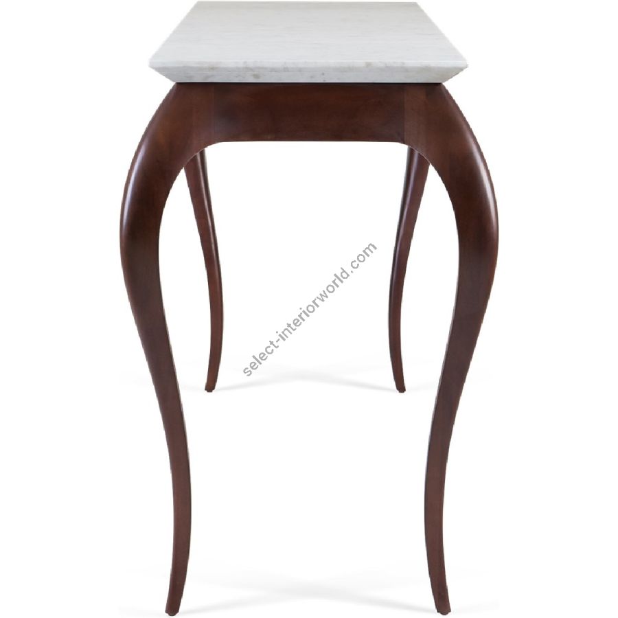 An understated console table with an “eyebrow” curved profile and slender bow legs. Elegantly hand-crafted from solid and mahogany with a marble top, this is a captivating and beautifully styled piece.