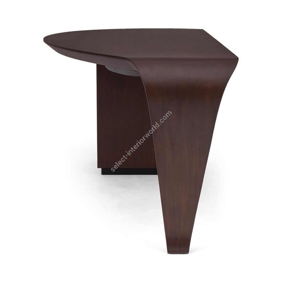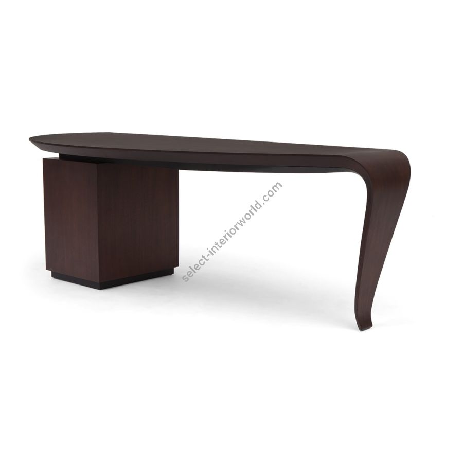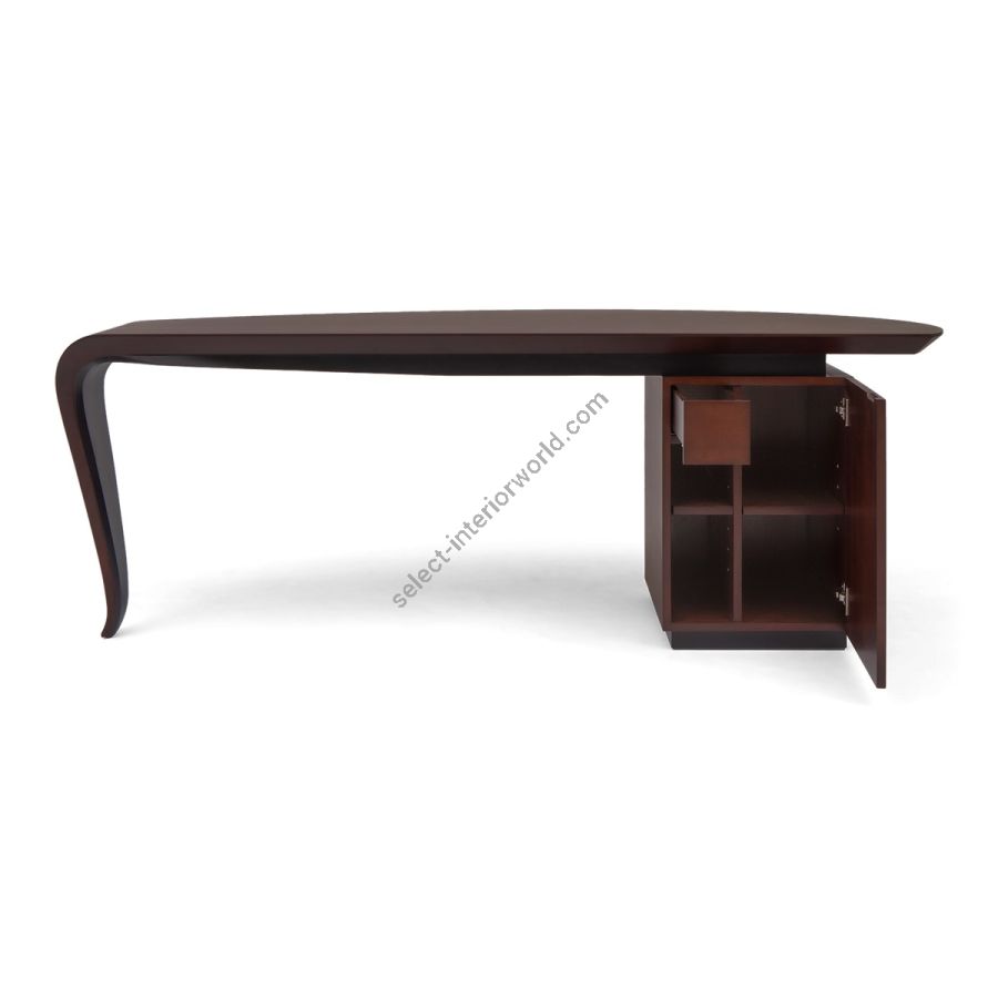 With the elegance of a single sweeping brush stroke, and inspired by the French painter Pierre Soulages, this stunning desk features a hand carved wood top that curves exquisitely into the single desk leg, supported by a cabinet that opens to reveal shelving and a hidden drawer. A truly spectacular CG masterpiece!