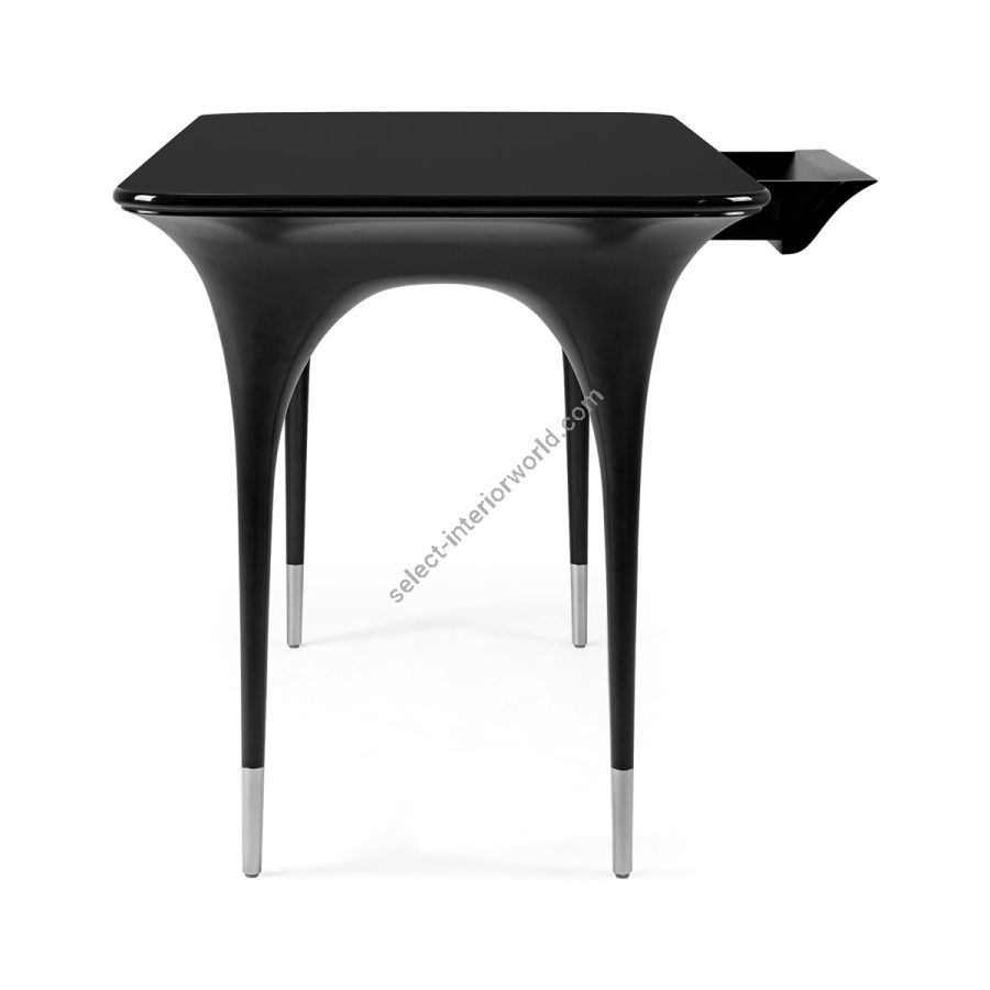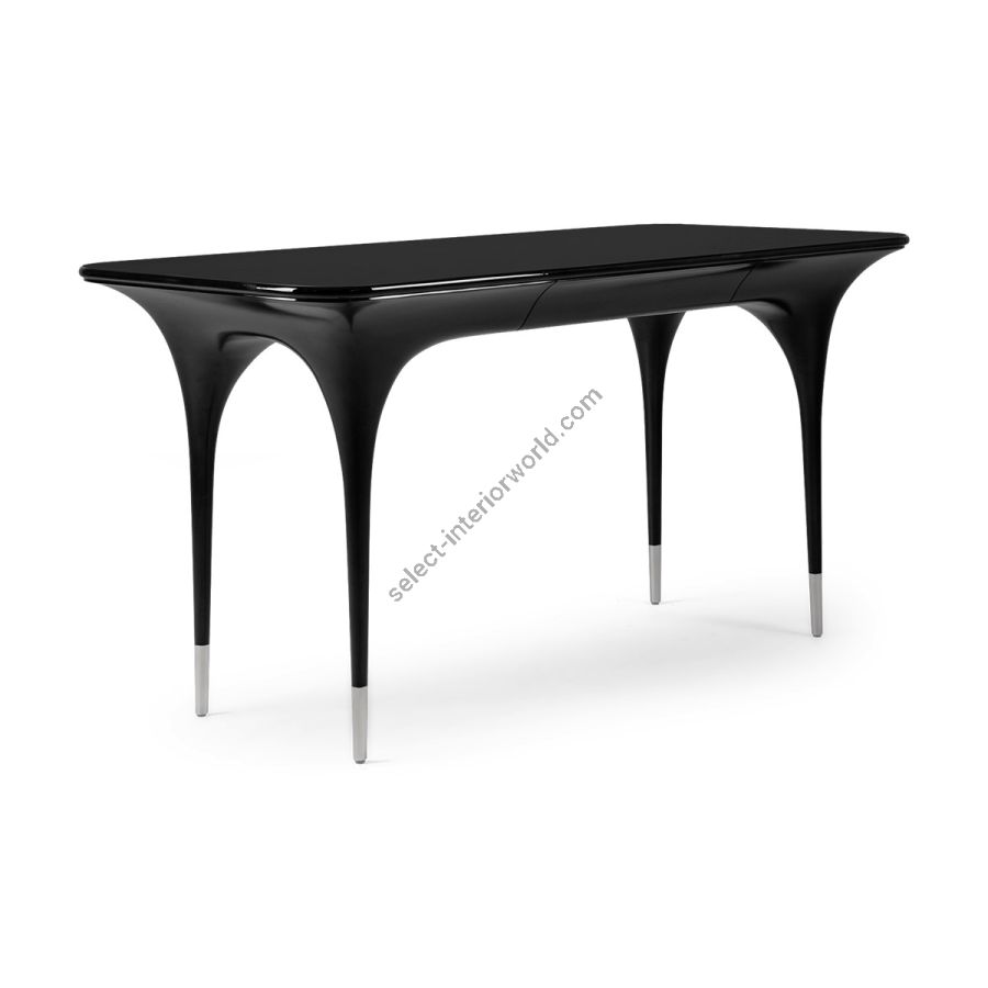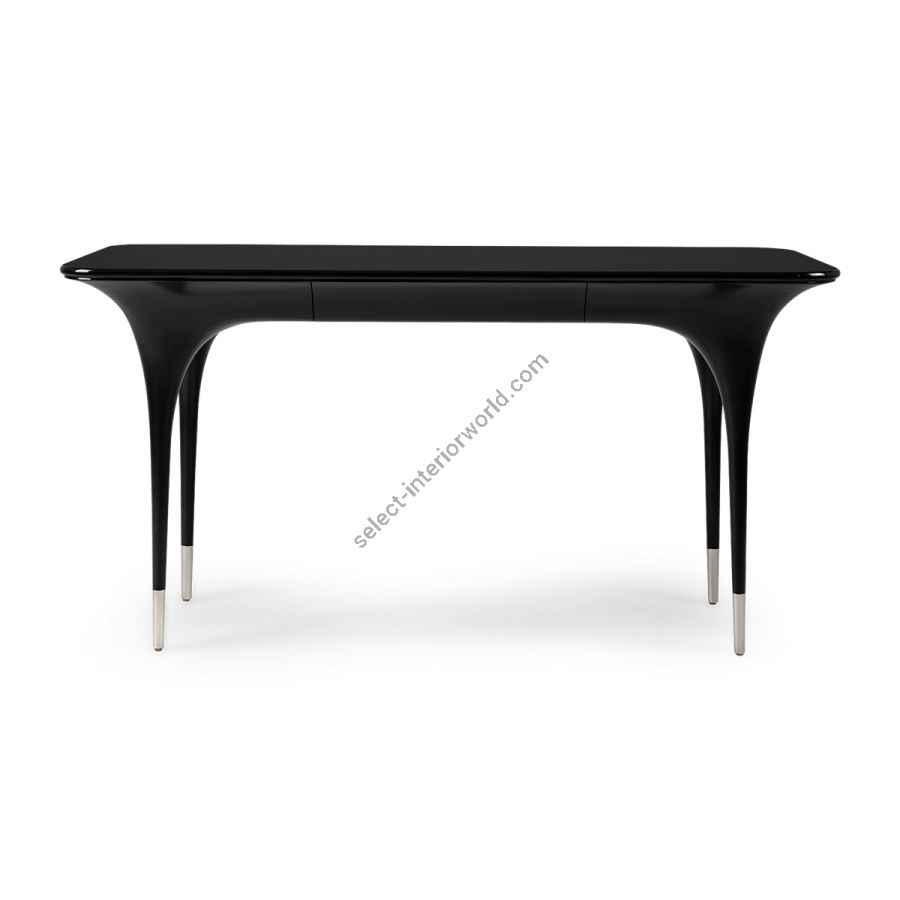 With the ultimate in elegance, this delightful desk is expertly hand carved with tall spindly brushed nickel finish tipped legs swooping into curves and a seamless tabletop with curved sides. A truly beautiful addition to any style of setting.