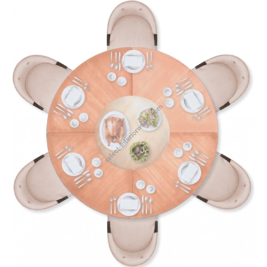 The Silk-cut once again makes an appearance on this fabulous table, on the elegant tapered pedestal featuring 4 distinctive brass feet. With three sizes to choose from, it is ideal as a center, breakfast or dining table, and is fitted with an antique brass Lazy Susan. Also available without Lazy Susan (76-0223)