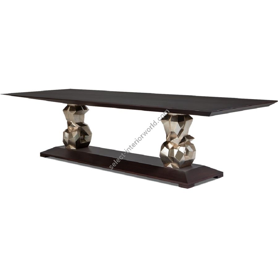 A captivating dining table design that adds practicality to glamour for a truly wonderful dining experience. The hand-sculptured mahogany bases support a veneered cantilevered table top.