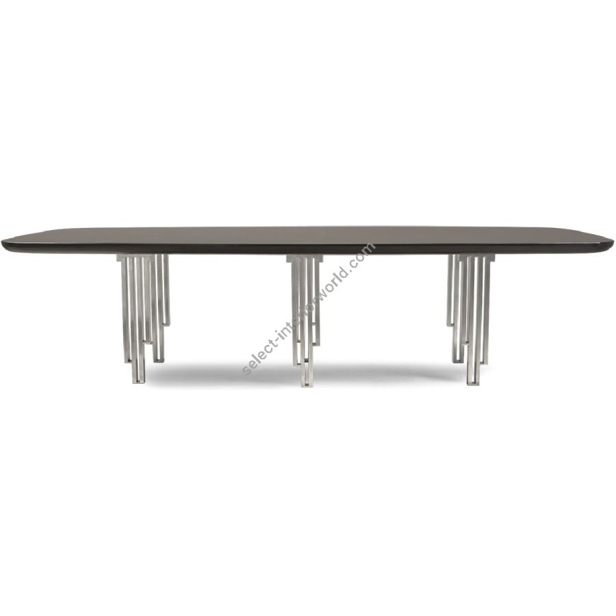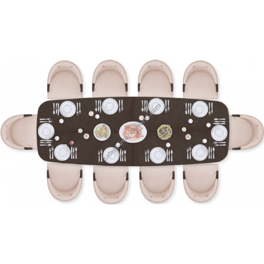 Certified Mahogany hardwood. Veneered Mahogany top. 8-10 Seater Table. Selection of remarkable finishes are available. For residential use only. Commercial use is classified as Special Order Design (SOD), and alternative materials may be required. Contact us for details.