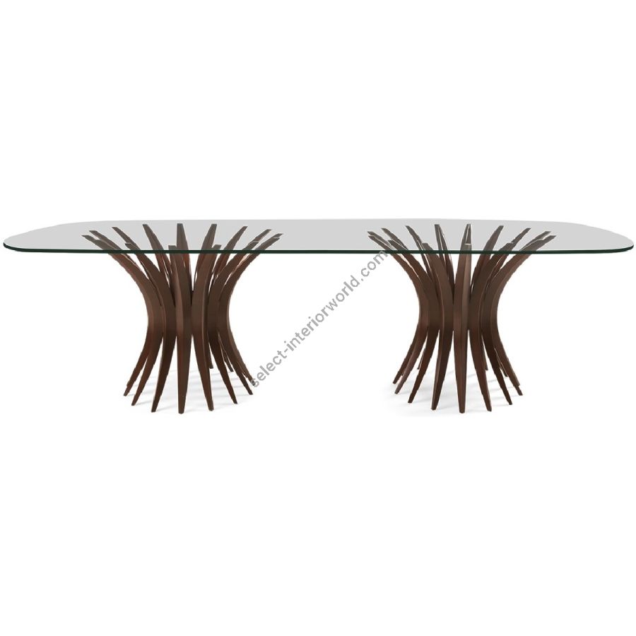 Christopher was inspired to create this stunning table in honour of the acclaimed Brazilian architect, Oscar Niemeyer and his masterpiece; the Cathedral de Brasilia. Crafted in mahogany with a tempered glass top for use as a dining table.