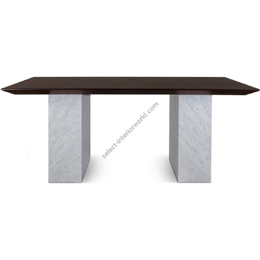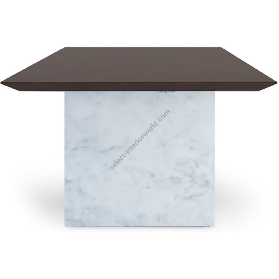 Bring elegance with edge to any dining setting. With smooth slabs of white Carrara marble as bases and a handmade rectangular wood top, this spectacular dining table is a real showstopper!