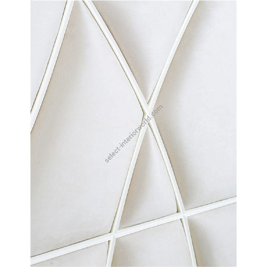 A grand display of detail and creative excellence. Signifying blades of grass blowing quietly over a open field, this imaginative headboard design features individually upholstered inserts, all brought together to create one beautiful image. The distinctive hand-carved patterning of this unique tall headboard adds a dramatic air of architectural artistry to a contemporary bedroom.