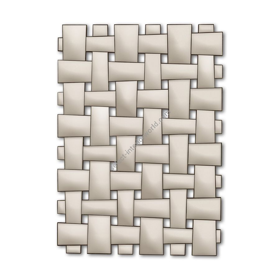 With a dramatic woven pattern featuring interlocking upholstered panels mounted in wooden frames, this spectacular headboard is inspired by the mirror created by Christopher Guy for the Chanel No.5 commercial.
