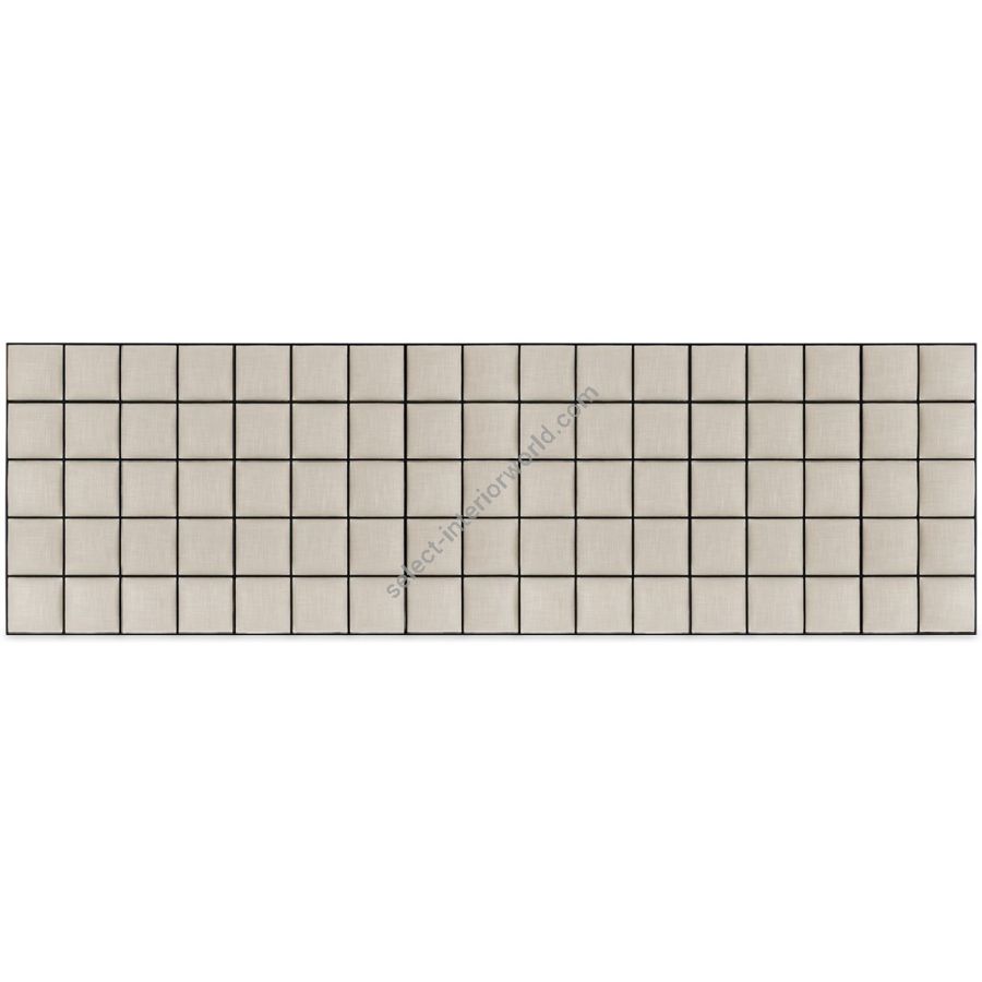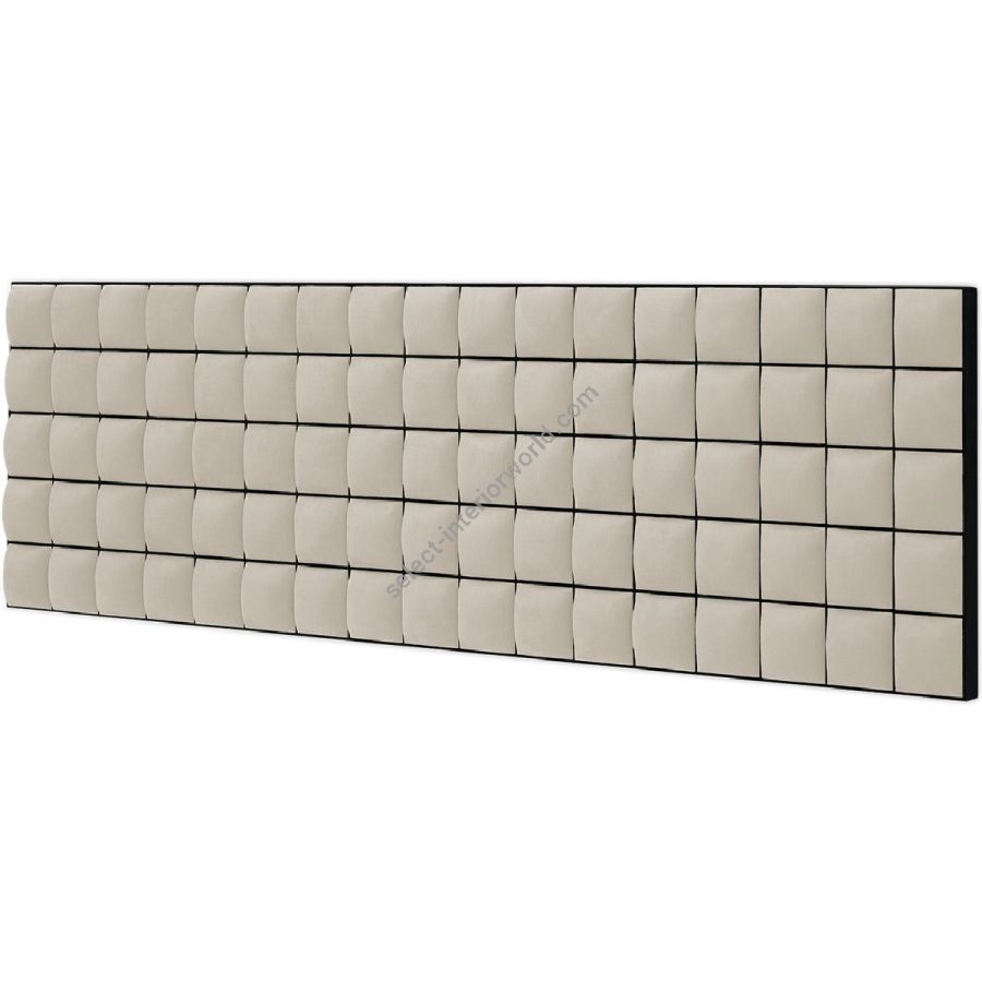 A stunning contemporary styled headboard composed of a grid of square panels, each framed with a fine wooden border reminiscent of a checkerboard, featuring 85 blocks.