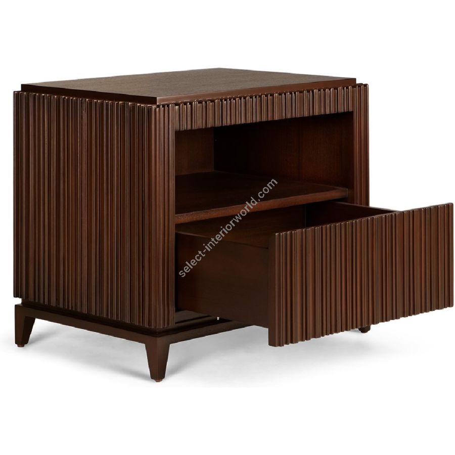 The signature Chez Harrods design of expertly hand carved ribbed wood is stunningly displayed on this nightstand. Featuring an inset shelf and discreet drawer, this is the perfect piece to complement any bedroom style.