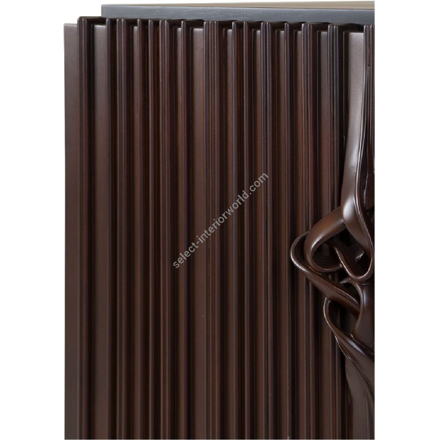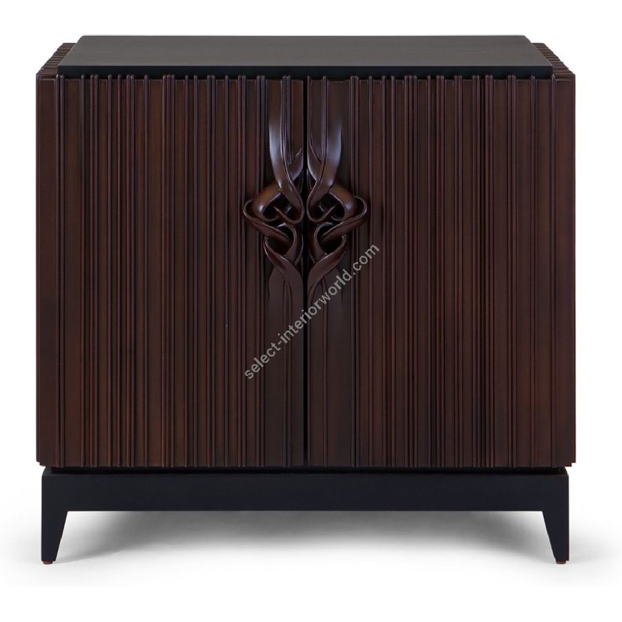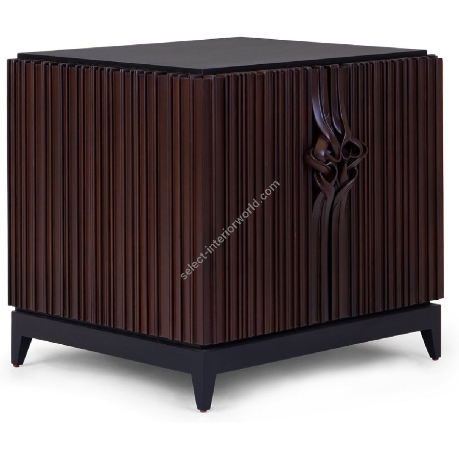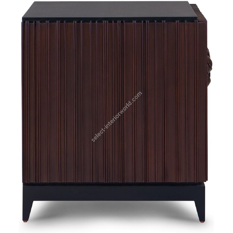 The signature Chez Harrods design of expertly hand carved ribbed wood is stunningly displayed on this nightstand. Features the classic intricate knot detailing on the doors, which open to reveal two shelves with adjustable heights. This is the perfect piece to complement any bedroom style.