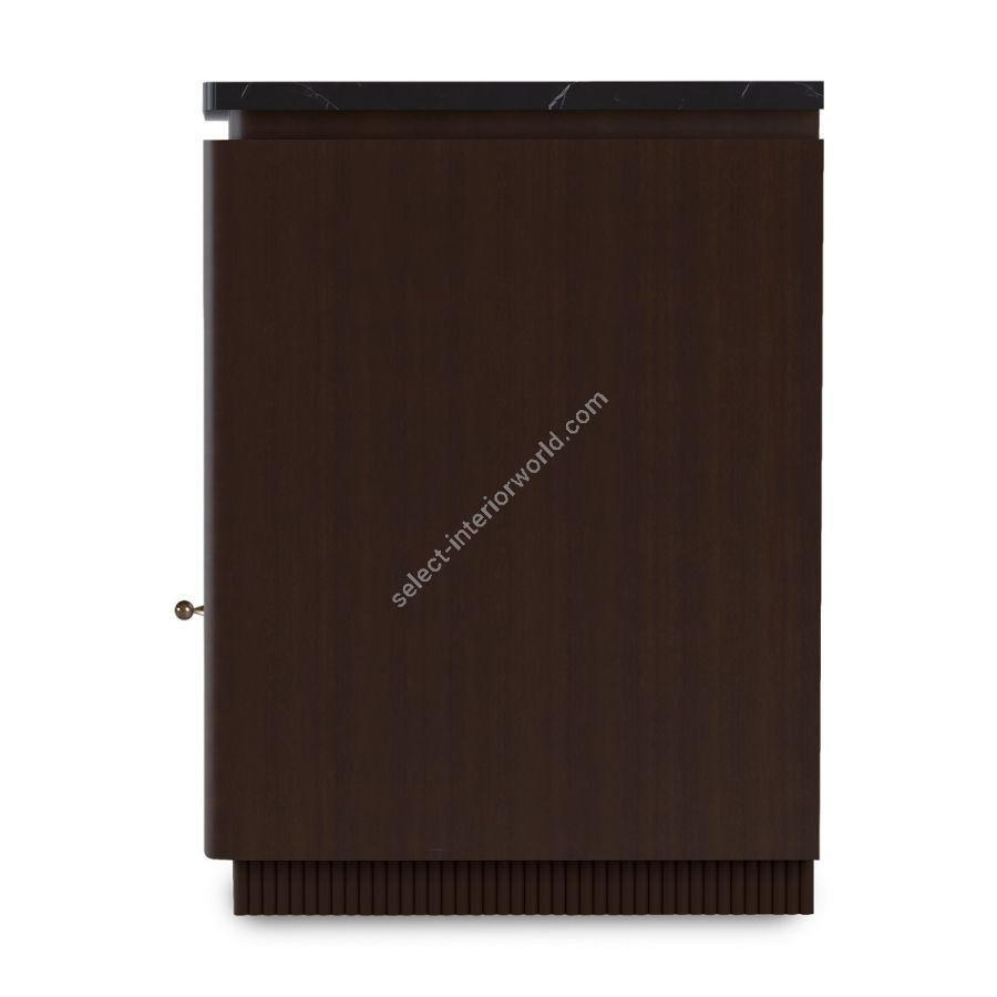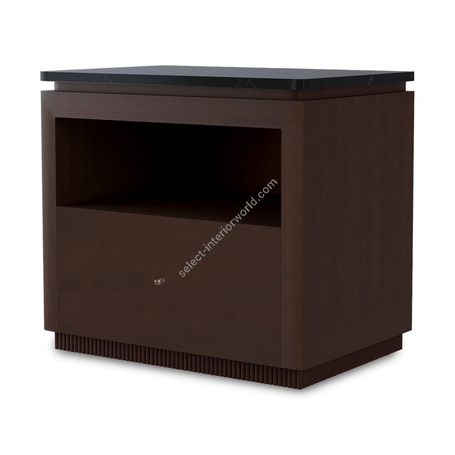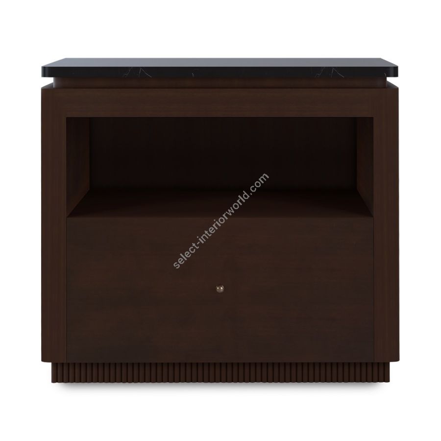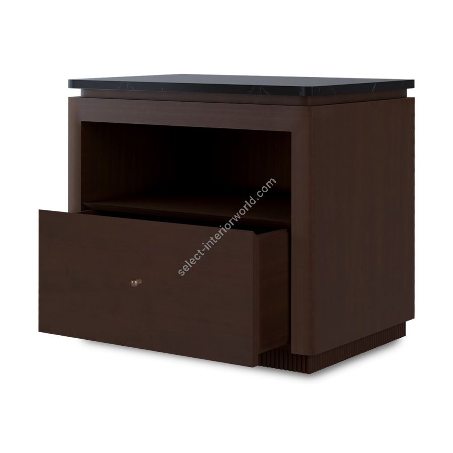 A classic mahogany nightstand with marble top in stunning Nero Marquina and feature ribbed base. The single drawer under an open compartment is lined in ultra-suede and the dimensions make this the perfect nightstand for most bedroom settings.