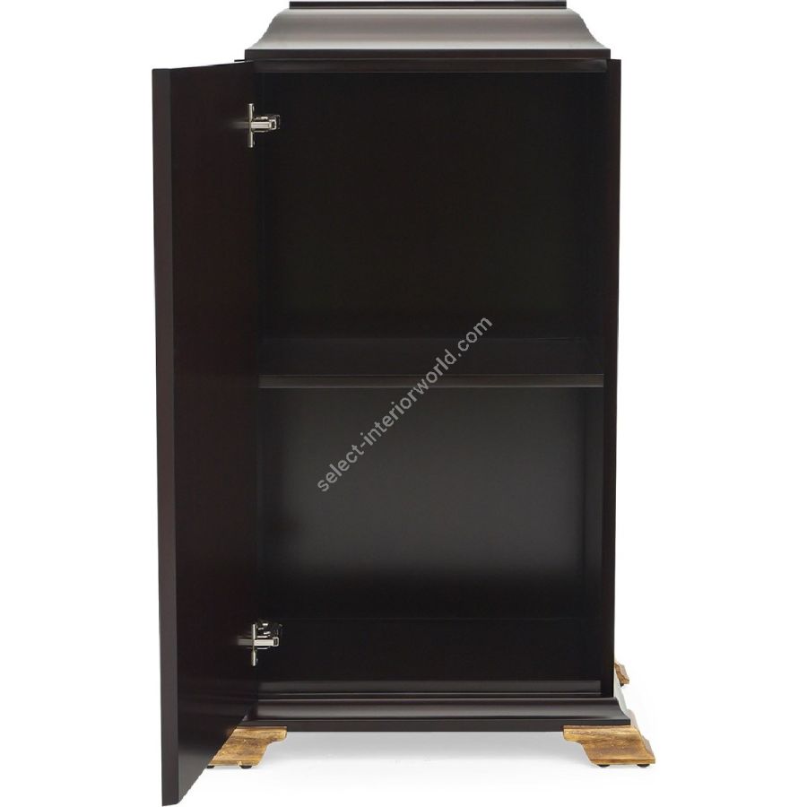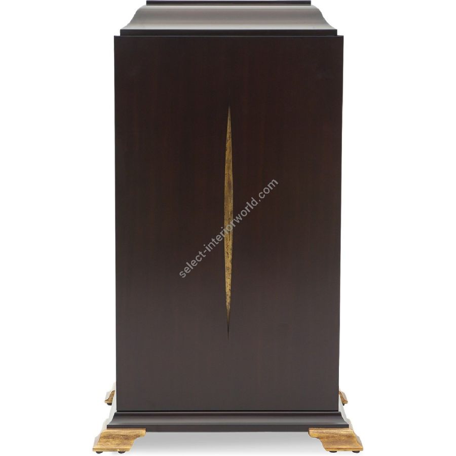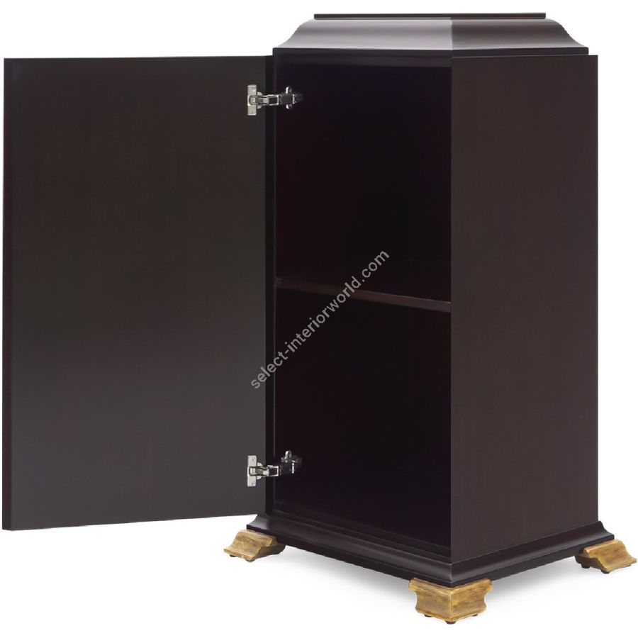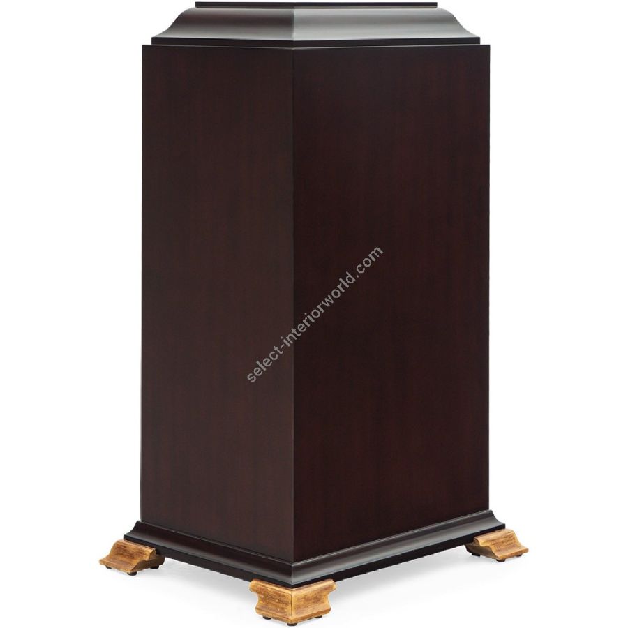 A truly elegant pedestal in veneered wood, with ogee crown, and the signature Silk-cut on the front of a concealed door, which when opened reveals a shelved compartment.
