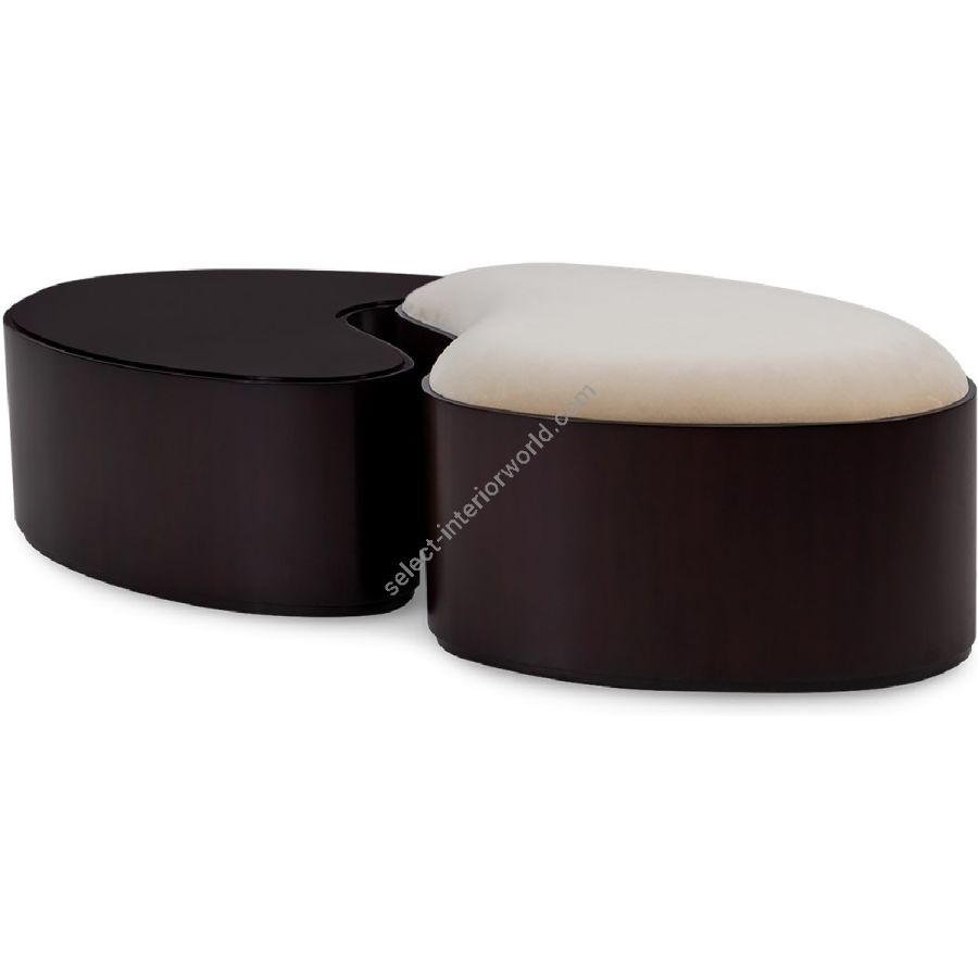 Combining style and function, this fabulous ottoman and coffee table set takes inspiration from the yin yang symbol, the ancient Chinese concept of interconnecting and counterbalancing forces. This exquisitely hand carved and upholstered set will bring the ultimate in harmony to any interior setting.