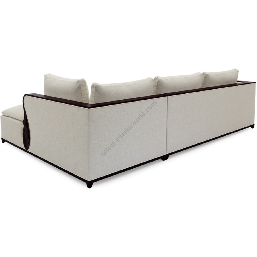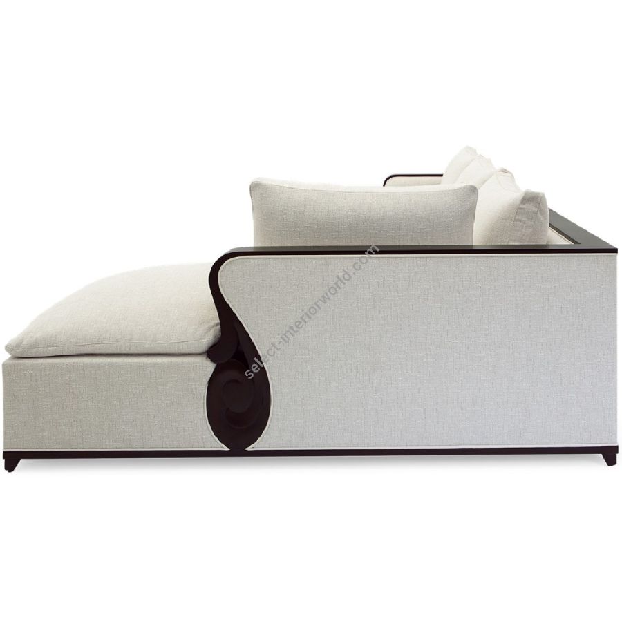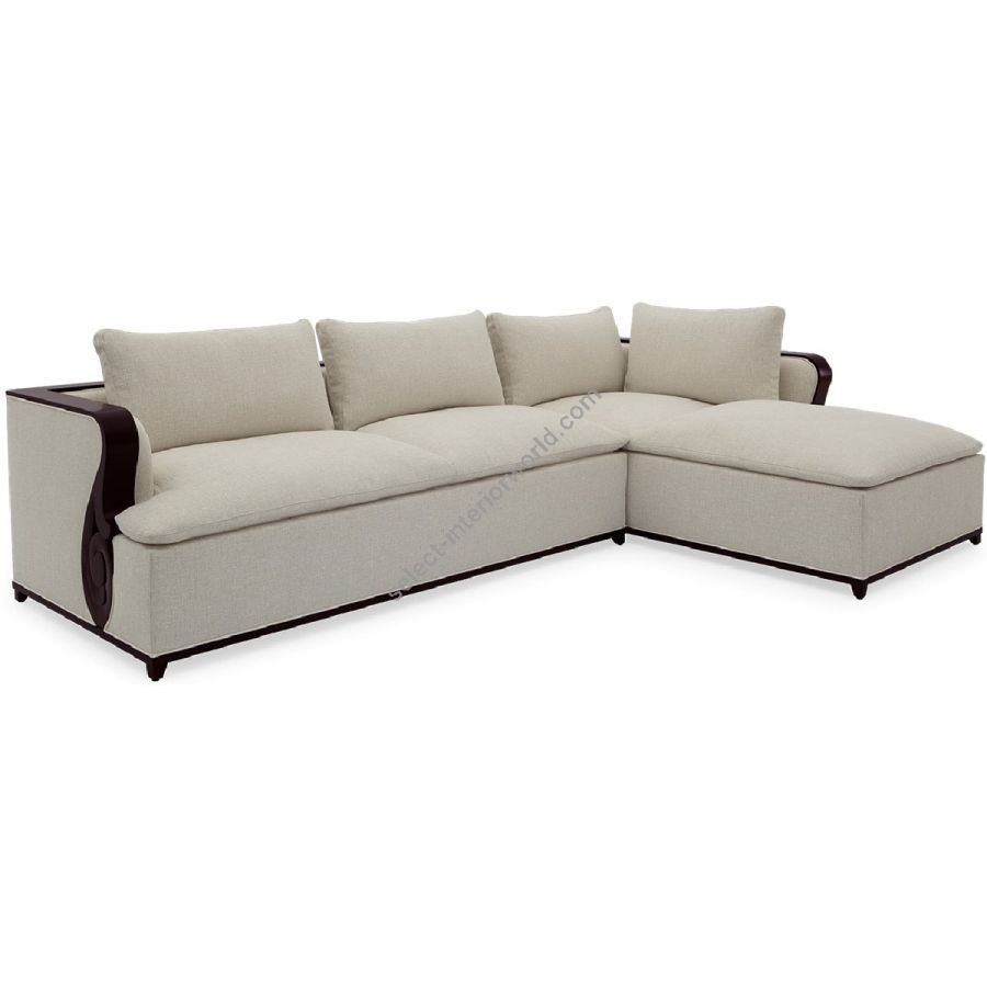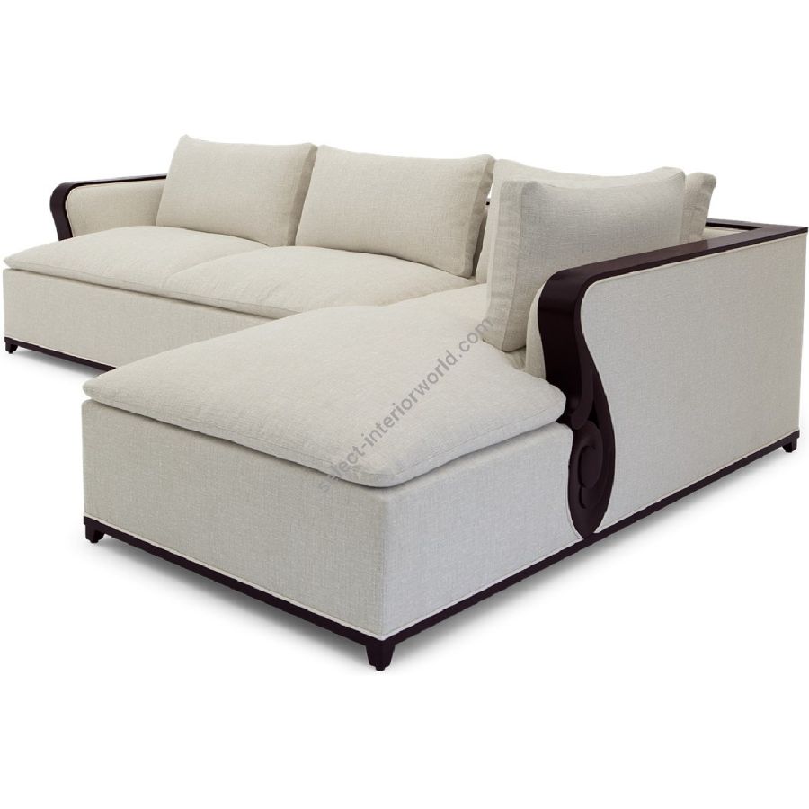 A fabulously chic sectional sofa, originally designed by Christopher for his city apartment, featuring unique hand carved solid mahogany details and frame.
