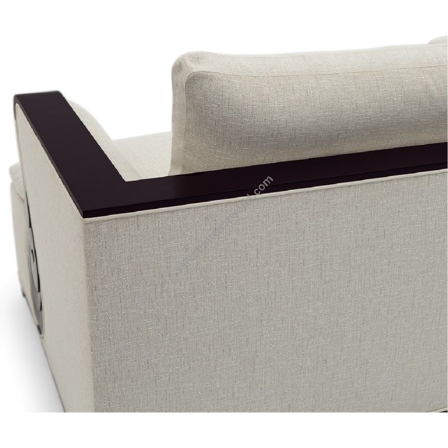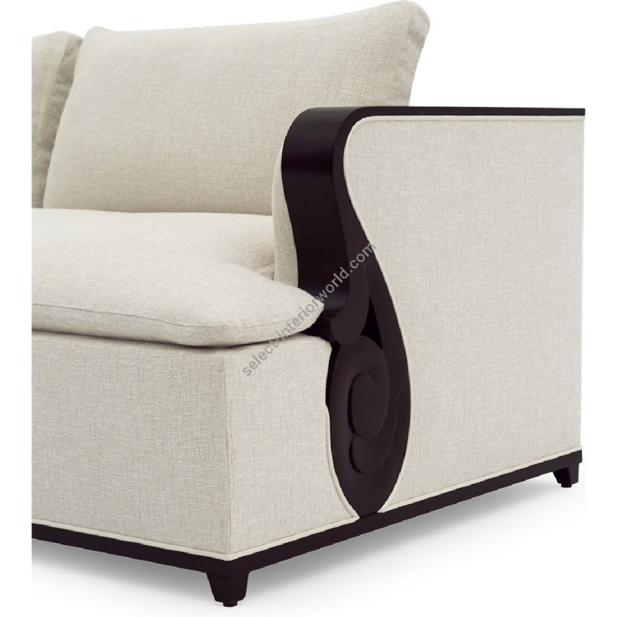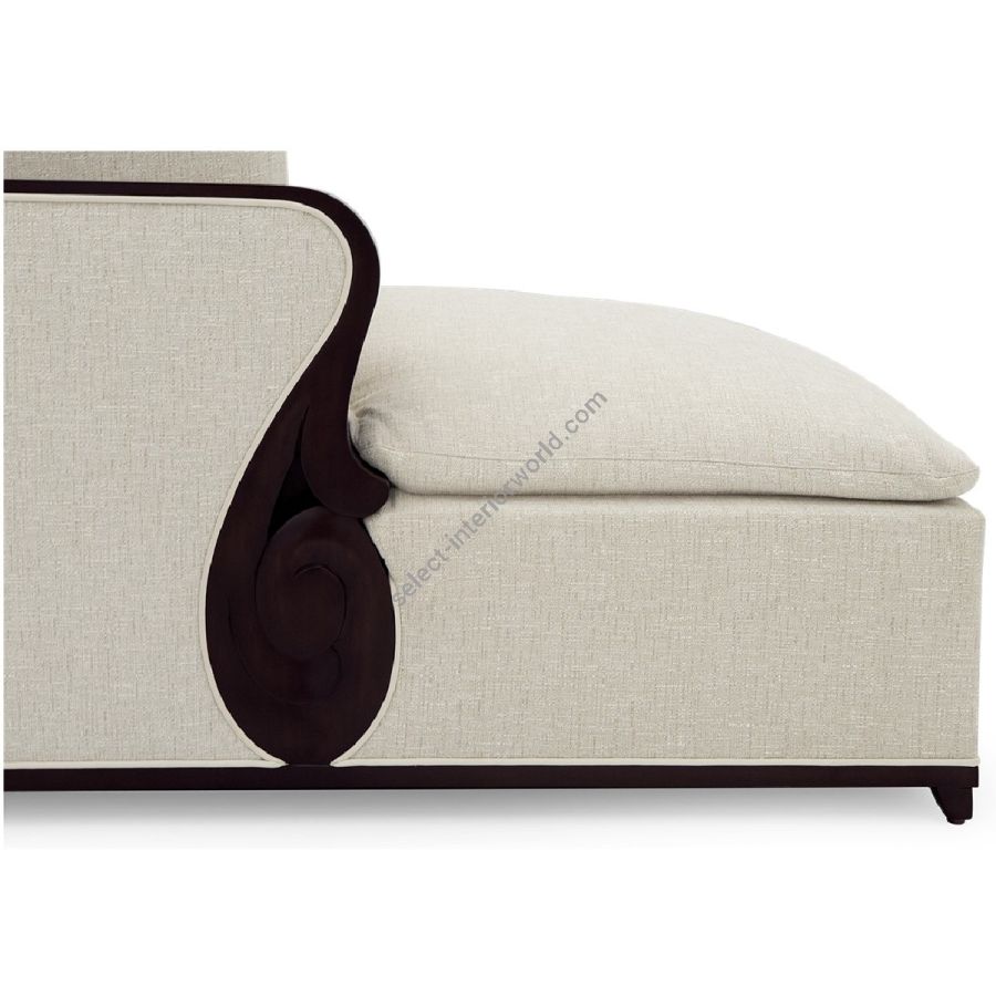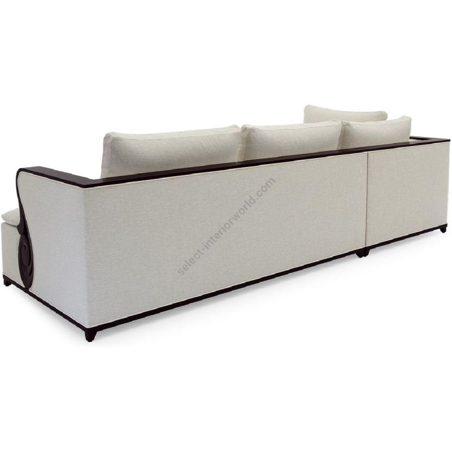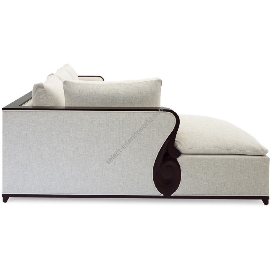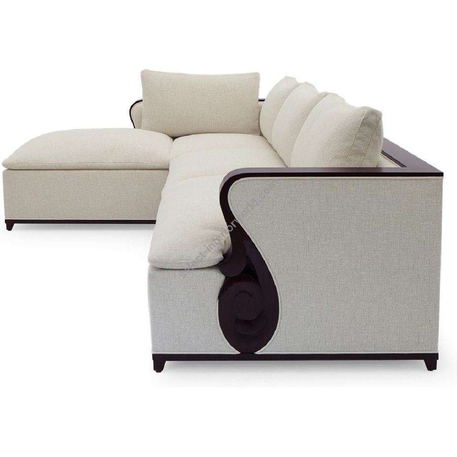 A fabulously chic sectional sofa, originally designed by Christopher for his city apartment, featuring unique hand carved solid mahogany details and frame.